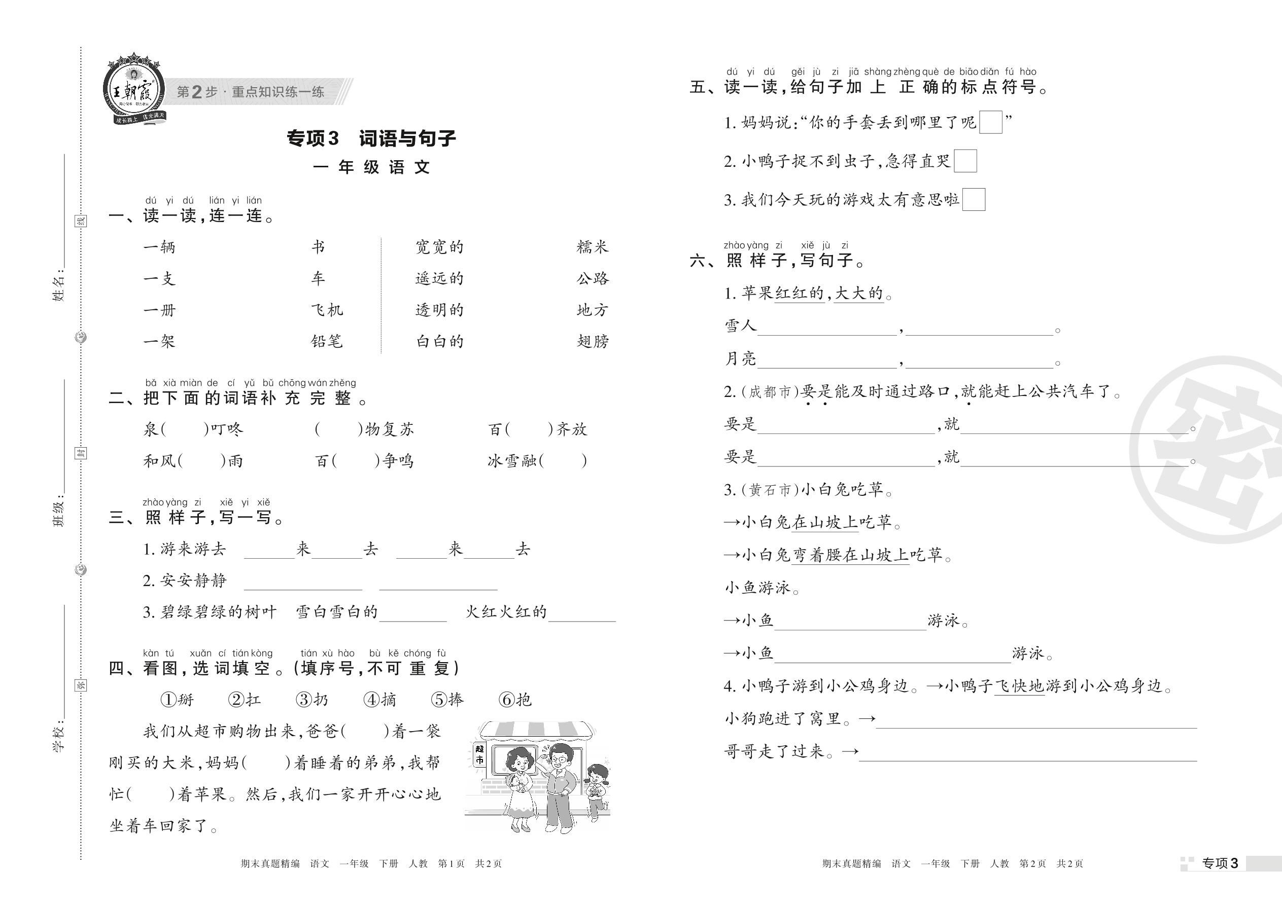 王朝霞期末专项卷——词语与句子一年级下册语文(人教版)_R220411170430795【3】