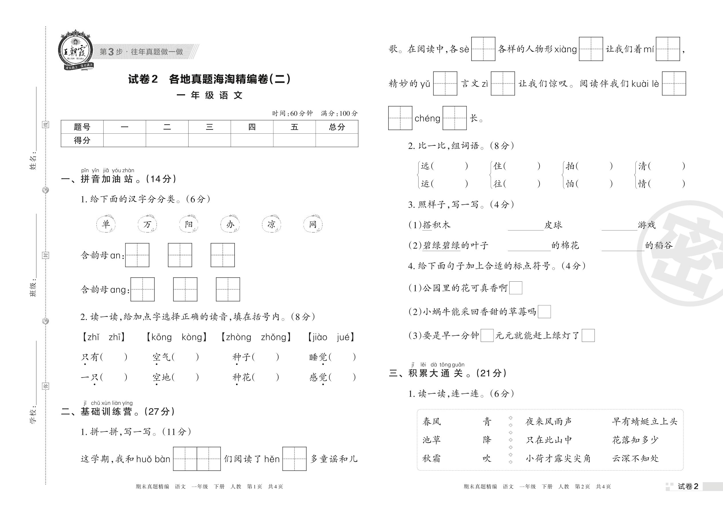 各地真题海淘精编卷(二)一年级下册语文(人教版)_R220411170431954【2】