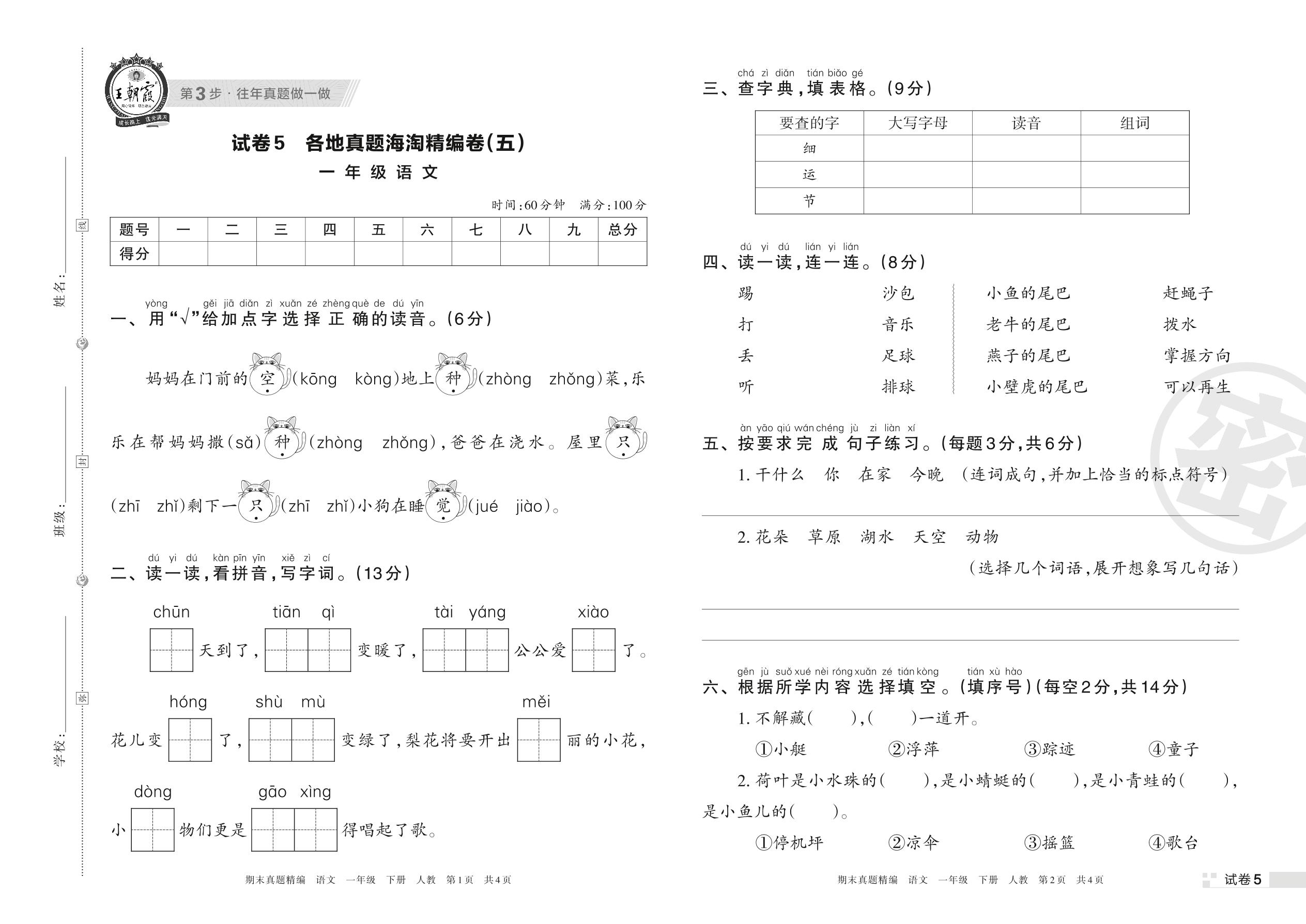 各地真题海淘精编卷(五)一年级下册语文(人教版)_R220411170431921【5】