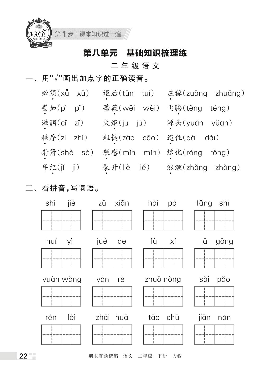 王朝霞期末过课本——第八单元 基础知识梳理练二年级下册语文(人教版)_R220411170956151