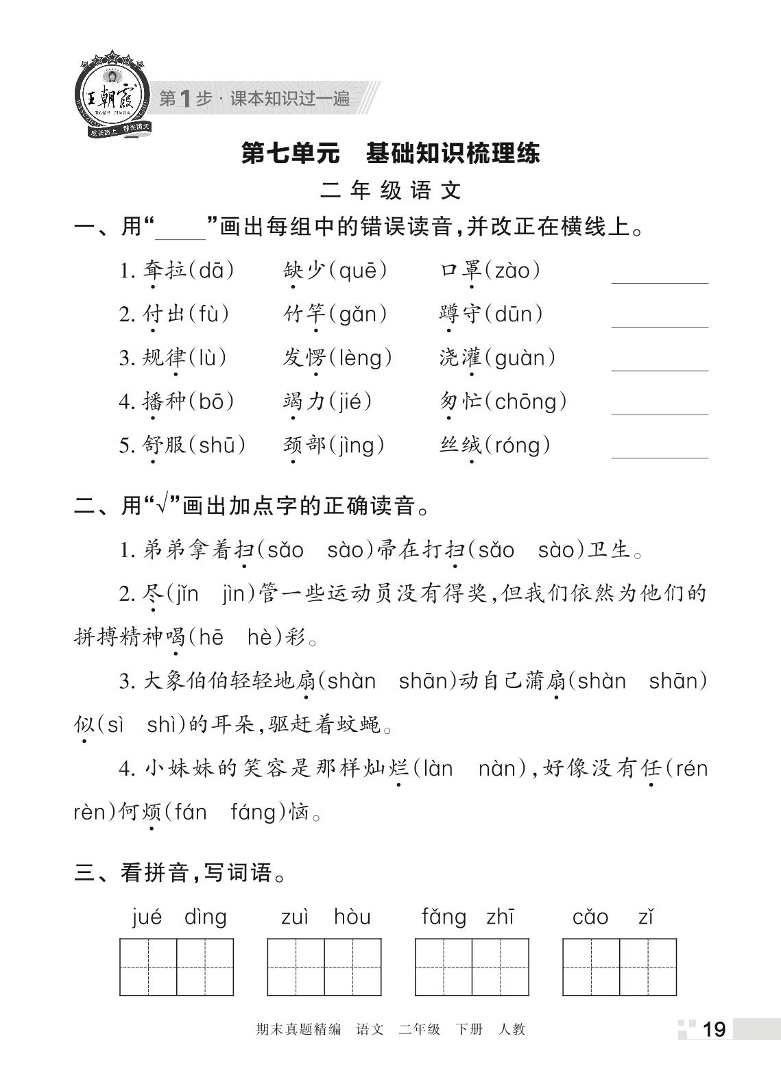 王朝霞期末过课本——第七单元 基础知识梳理练二年级下册语文(人教版)_R220411170957853