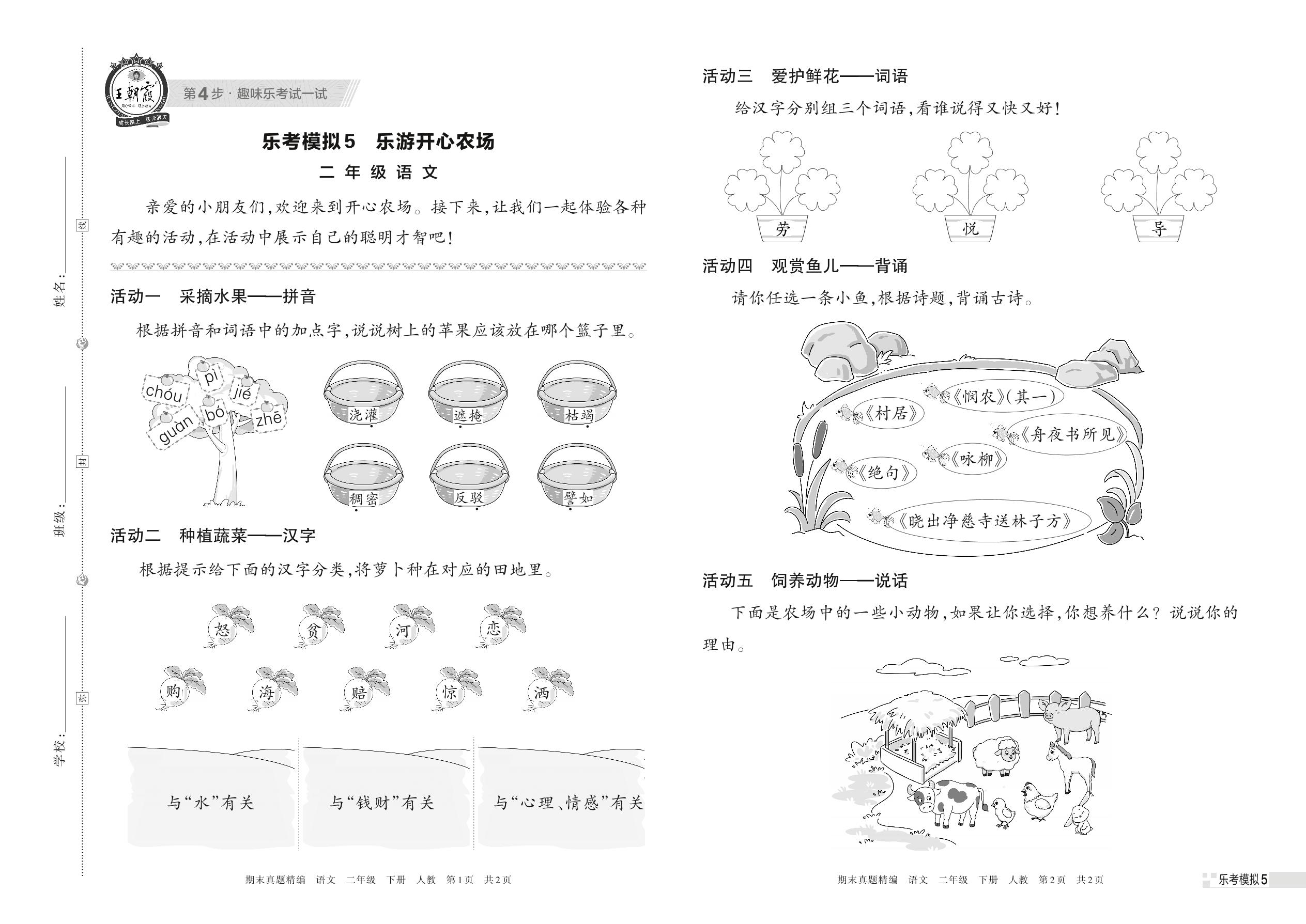 乐考模拟5 乐游开心农场二年级下册语文(人教版)