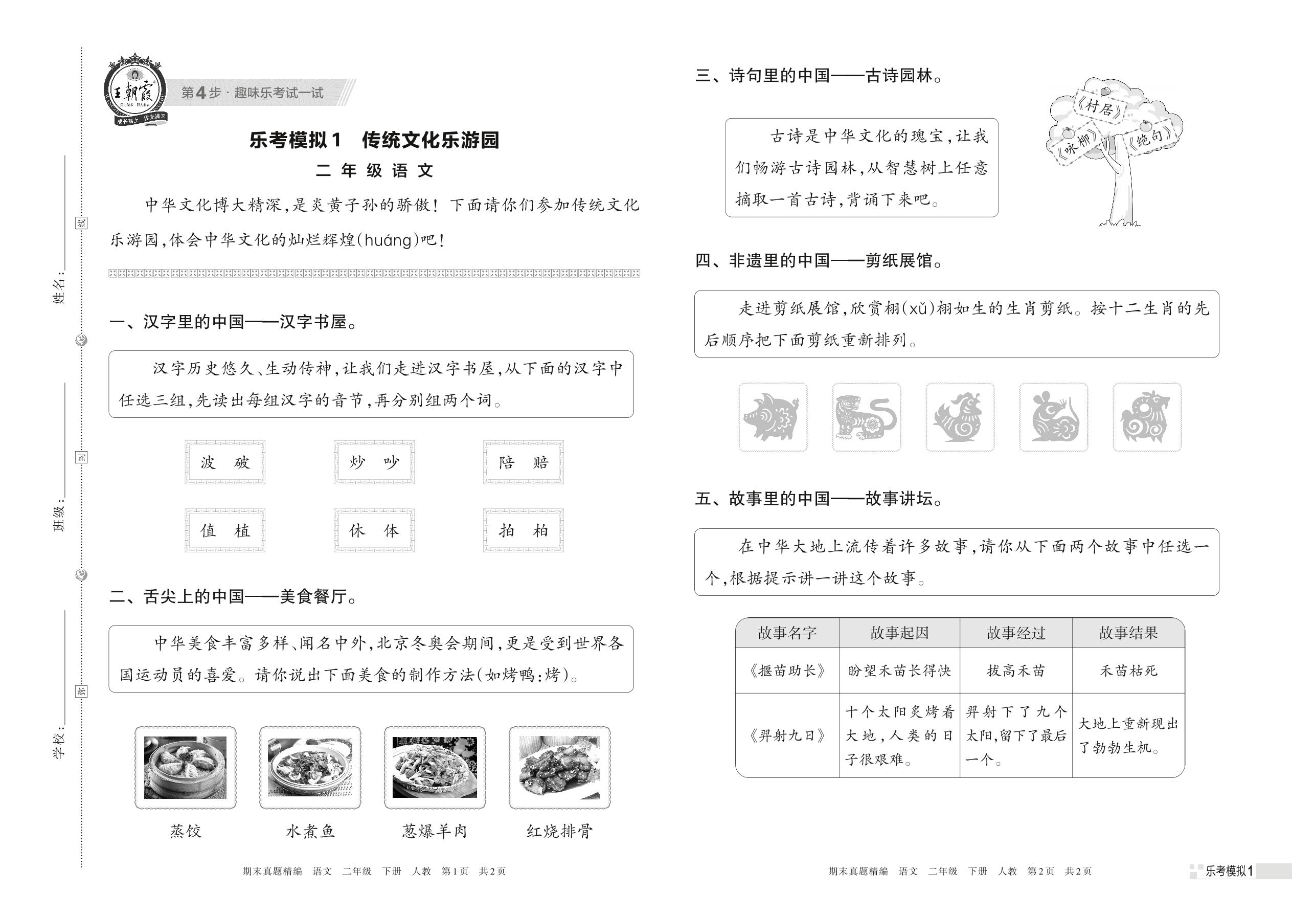 乐考模拟1 传统文化乐游园二年级下册语文(人教版)