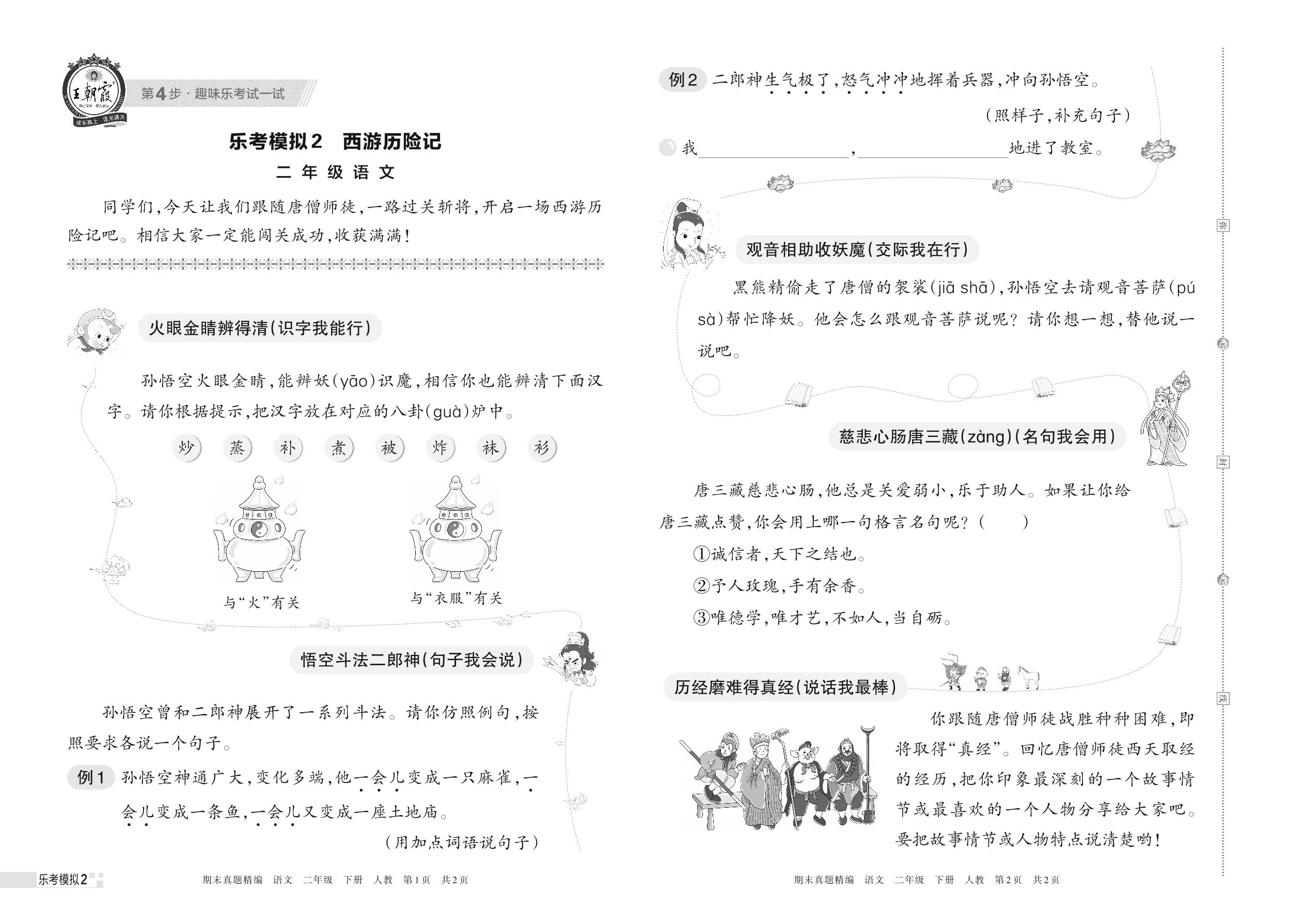 乐考模拟2 西游历险记二年级下册语文(人教版)