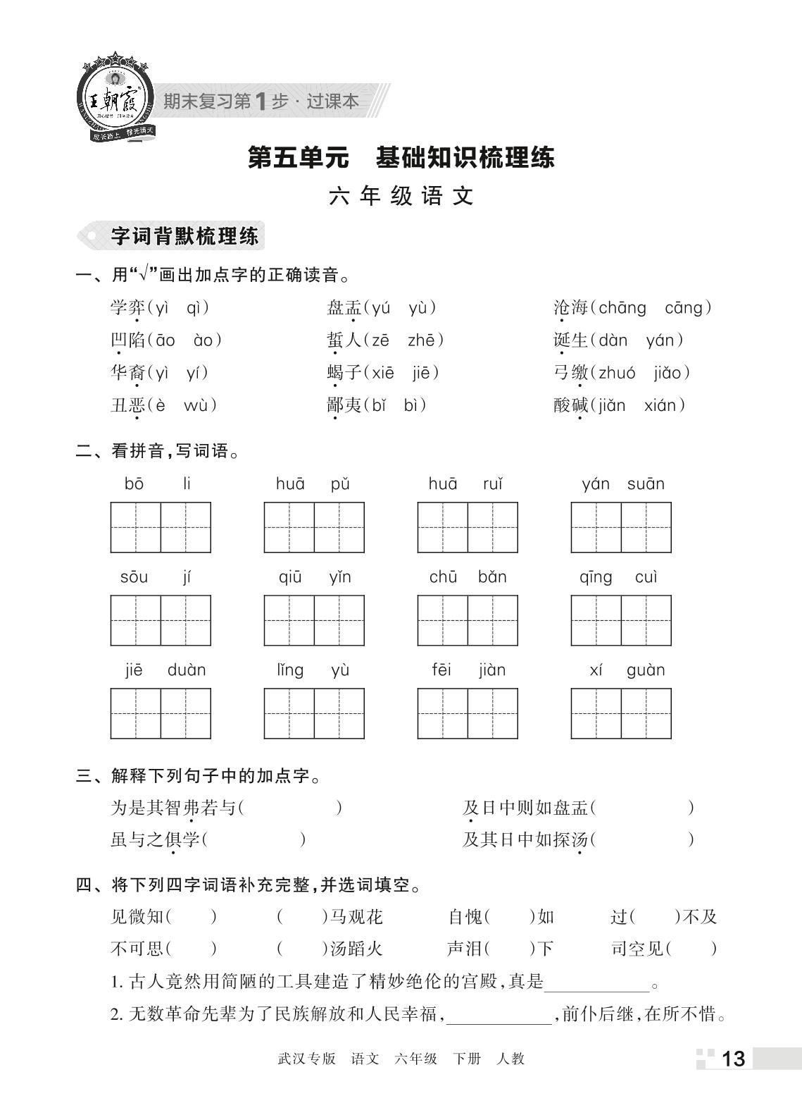 王朝霞期末过课本——第五单元 基础知识梳理练六年级下册语文(人教版)_R220412164744749