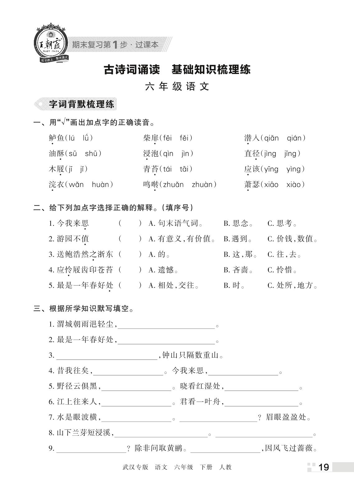 王朝霞期末过课本——古诗词诵读 基础知识梳理练六年级下册语文(人教版)_R220412164744148