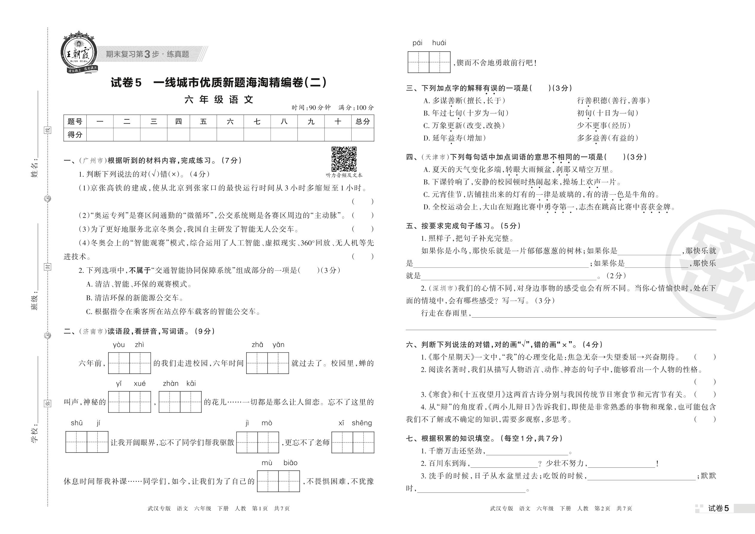 一线城市优质新题海淘精编卷(二)六年级下册语文(人教版)_R220412164746310【5】