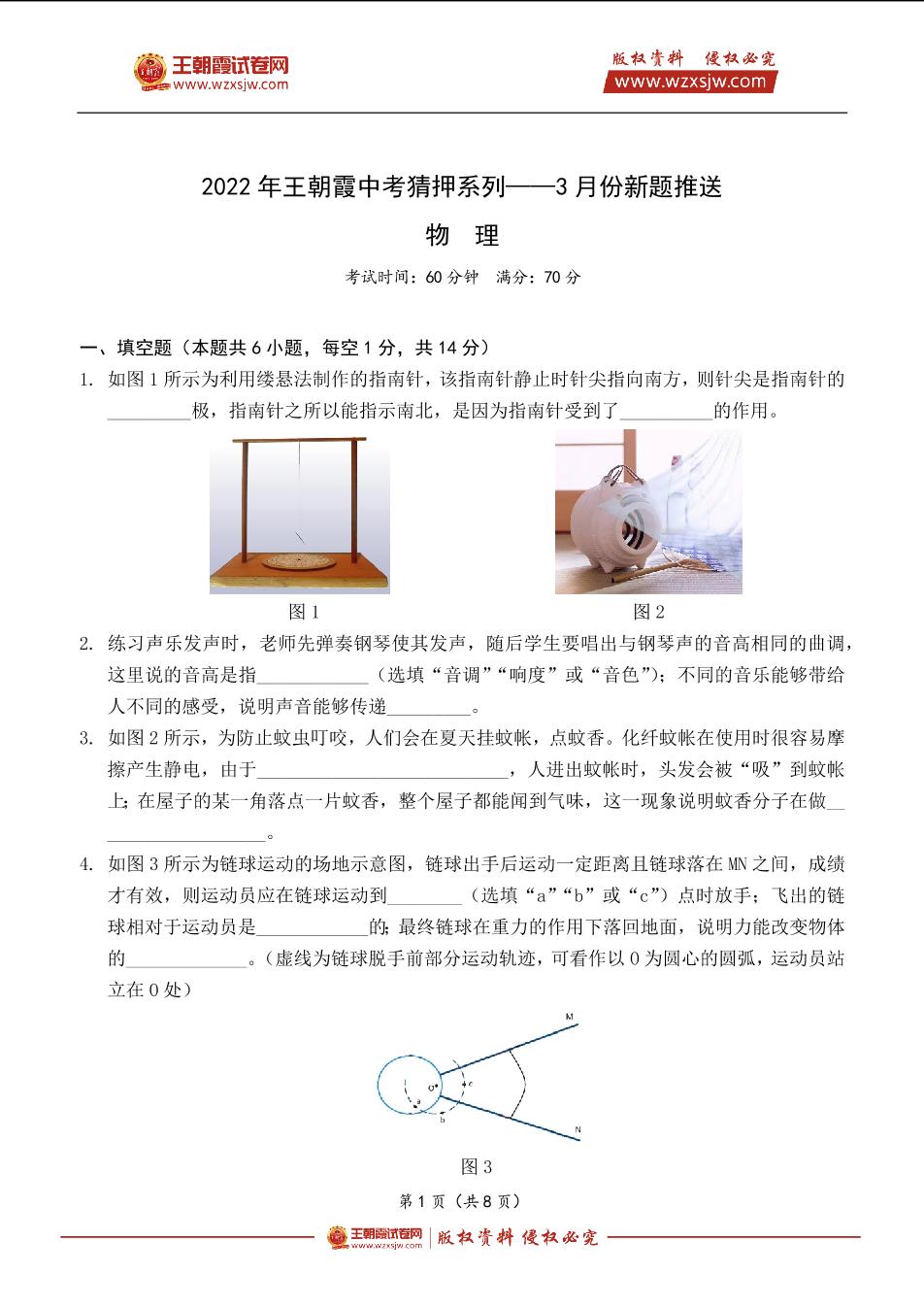 【物理】2022年王朝霞中考猜押系列——3月份新题推送
