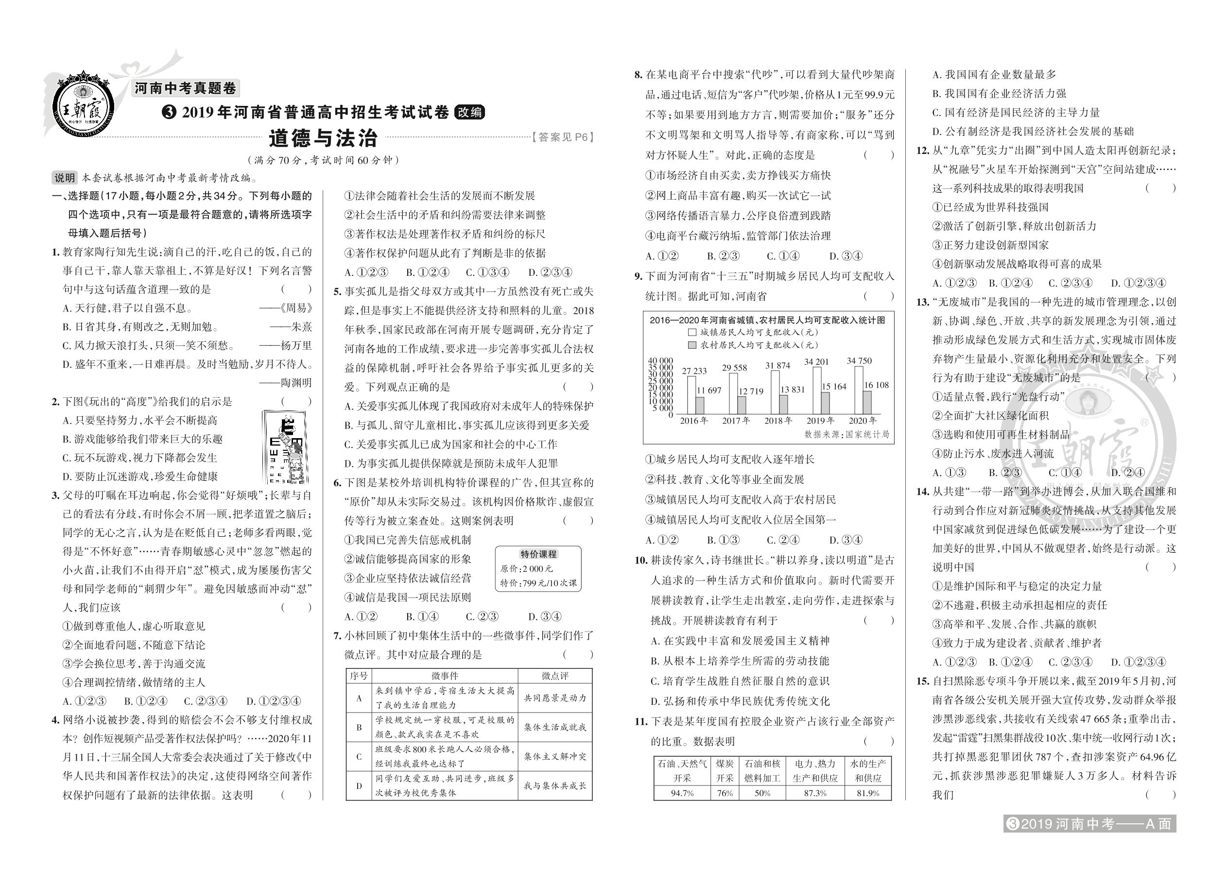 2019年河南省普通高中招生考试试卷(改编)·道德与法治【3】