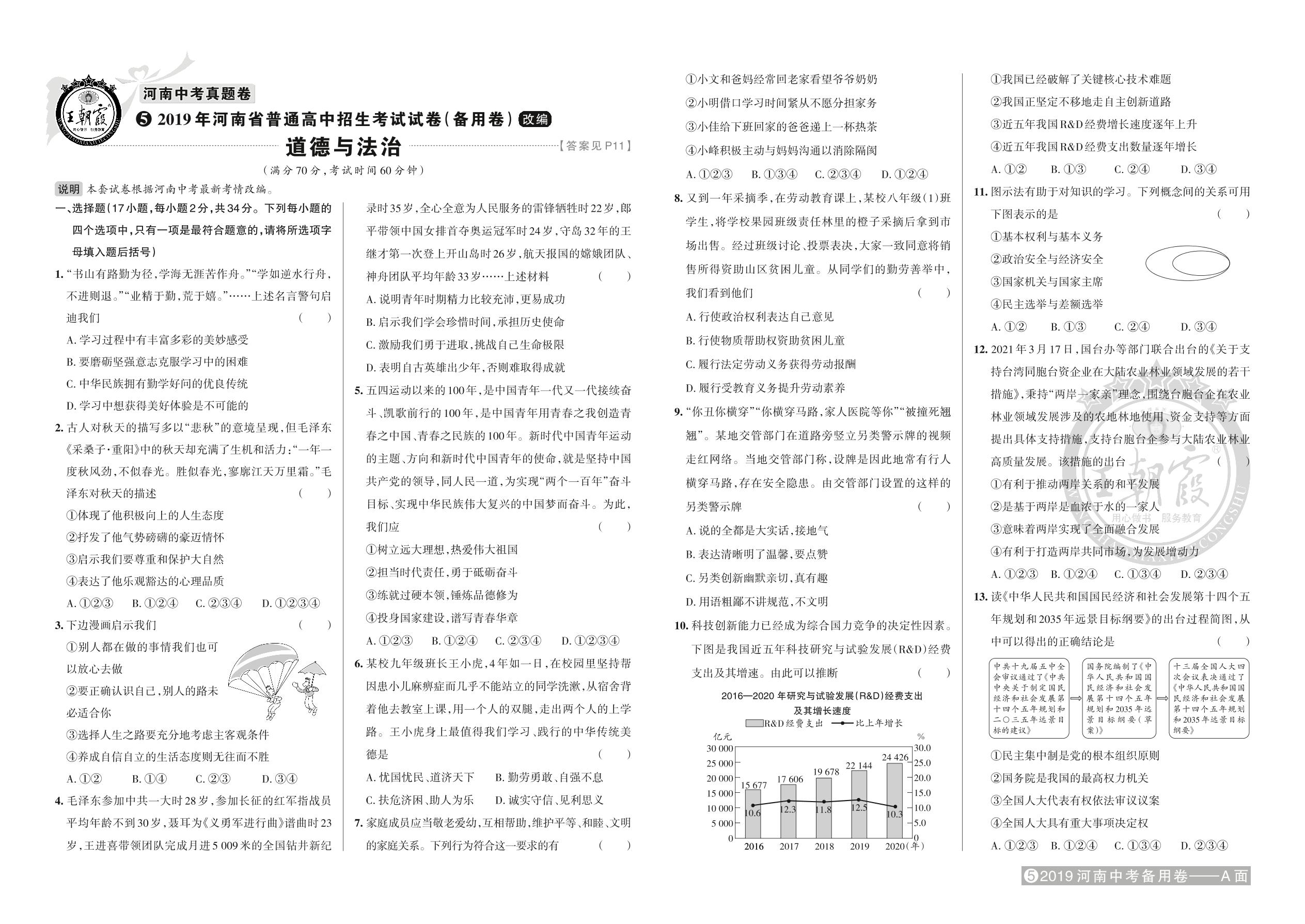 2019年河南省普通高中招生考试试卷(备用卷)(改编)·道德与法治【5】