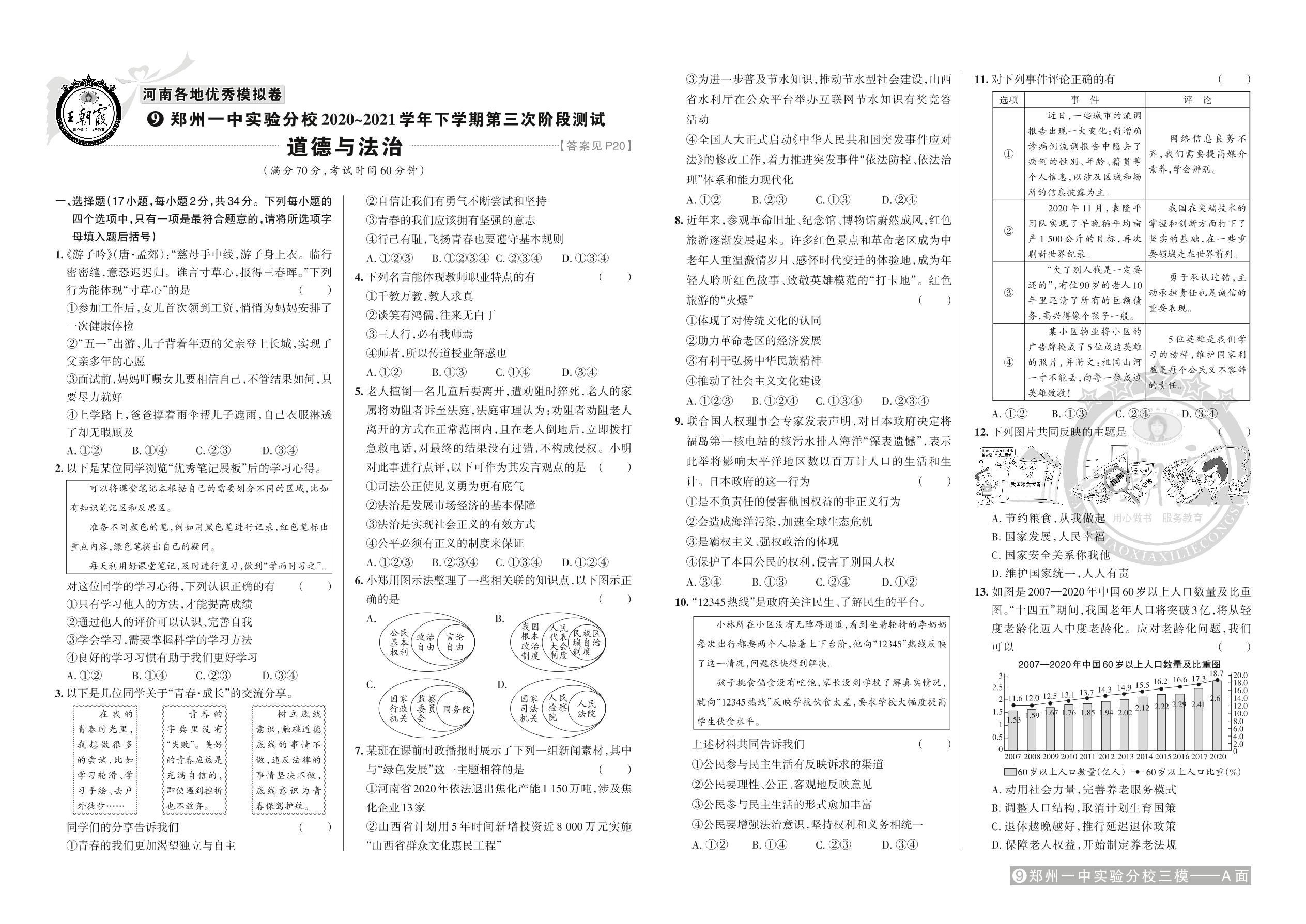 郑州一中实验分校2020~2021学年下学期第三次阶段测试·道德与法治【9】