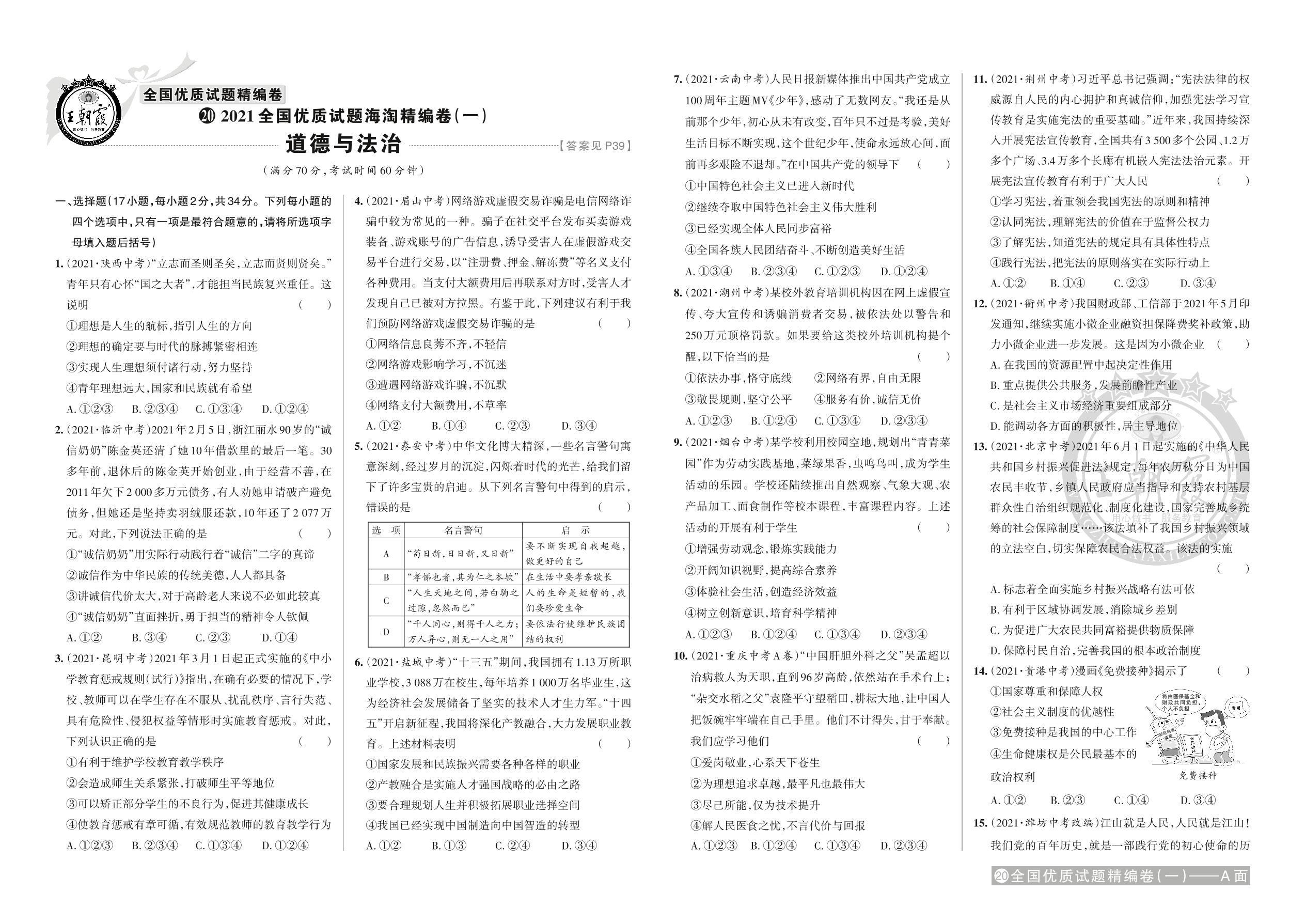 2021全国优质试题海淘精编卷(一)·中考道德与法治【20】
