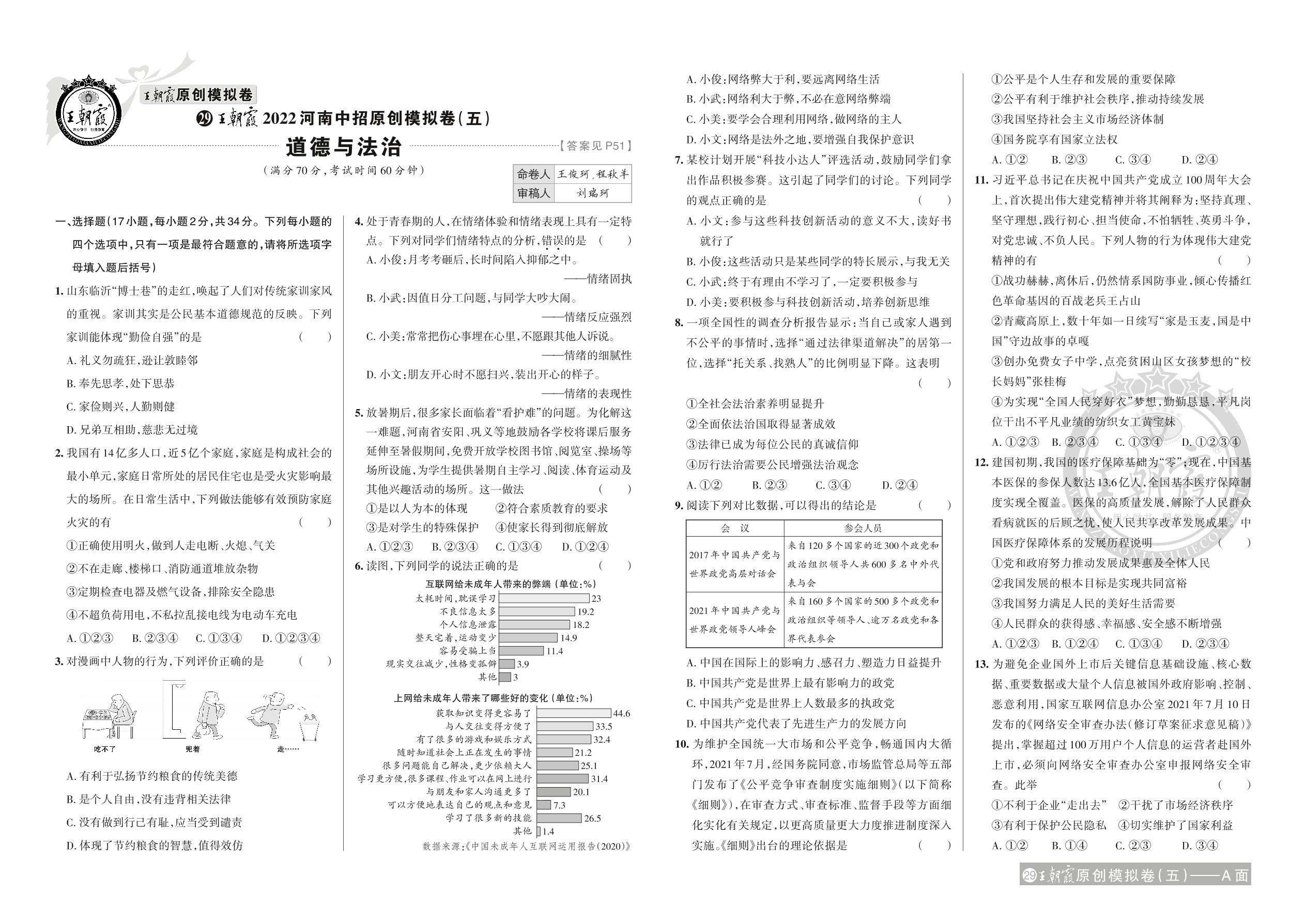 王朝霞2022河南中招原创模拟卷(五)·道德与法治【29】