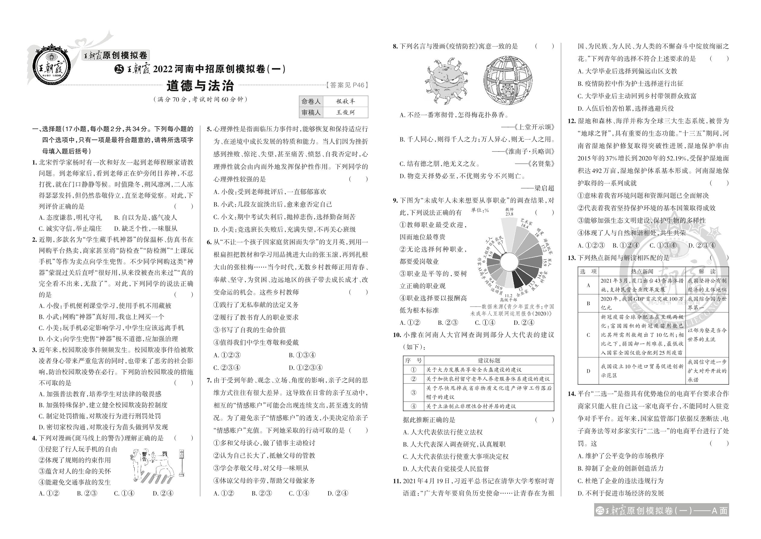 王朝霞2022河南中招原创模拟卷(一)·道德与法治【25】