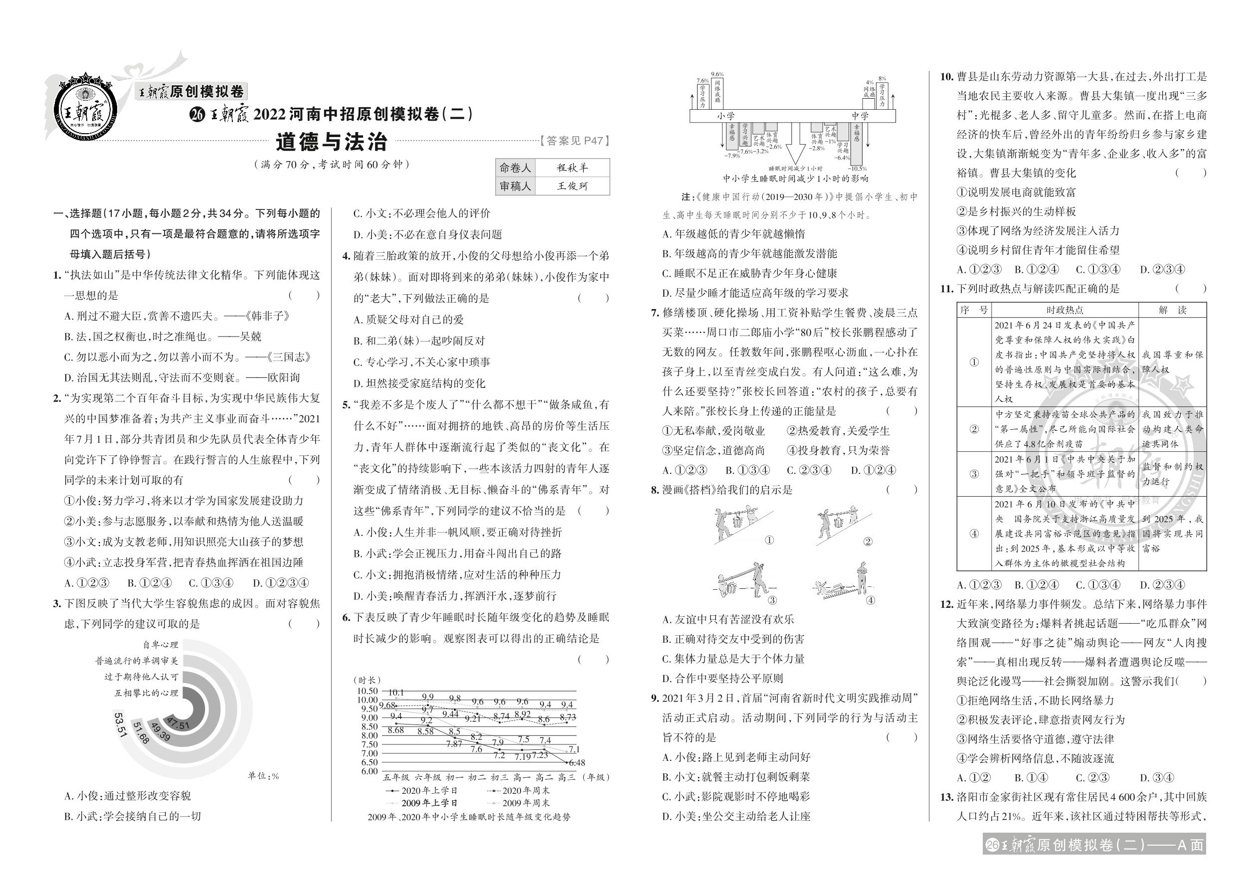 王朝霞2022河南中招原创模拟卷(二)·道德与法治【26】
