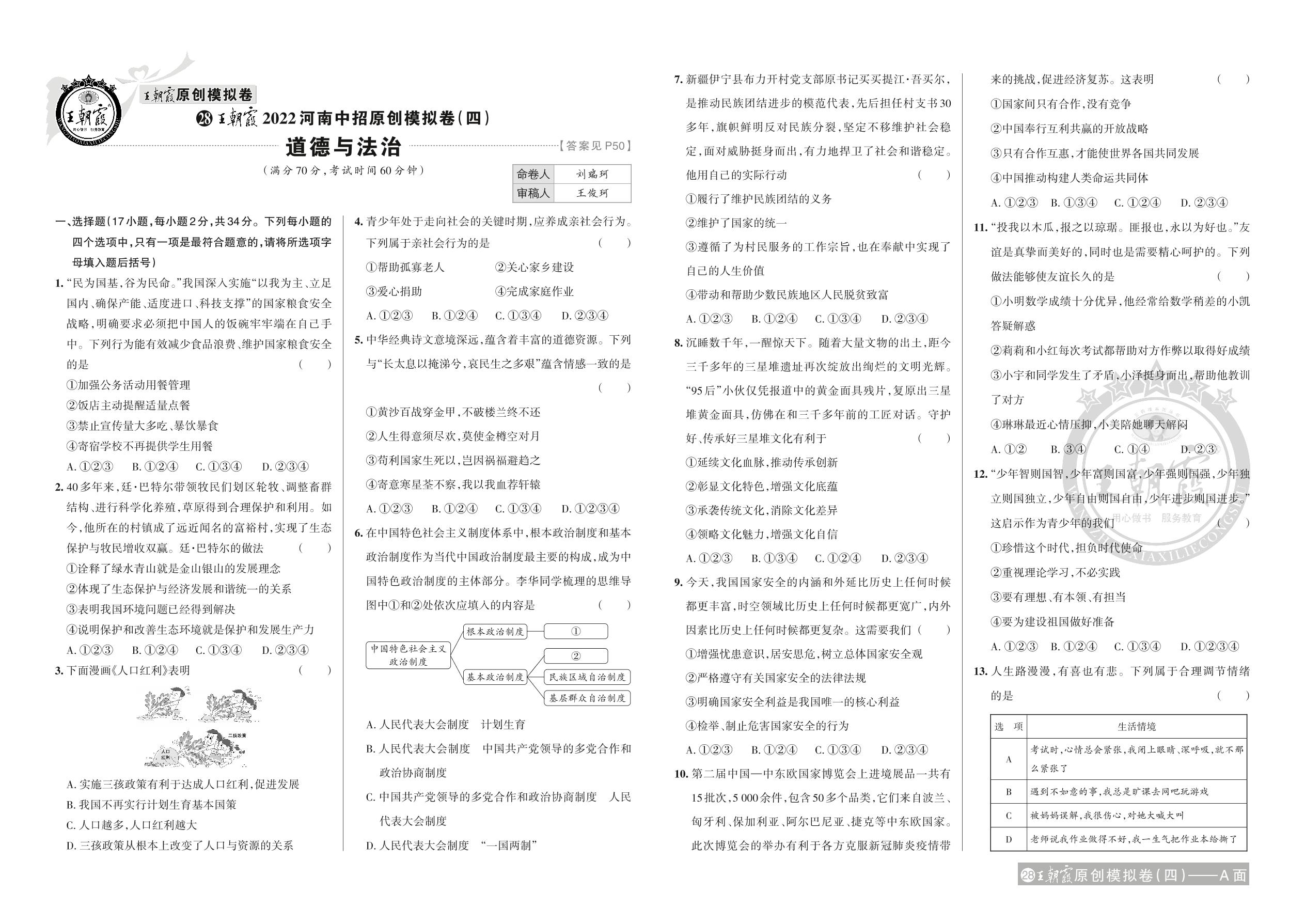 王朝霞2022河南中招原创模拟卷(四)·道德与法治【28】
