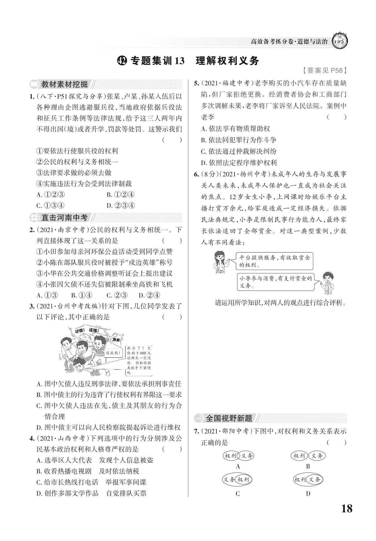 专题集训13 理解权利义务·八年级下册道德与法治【42】