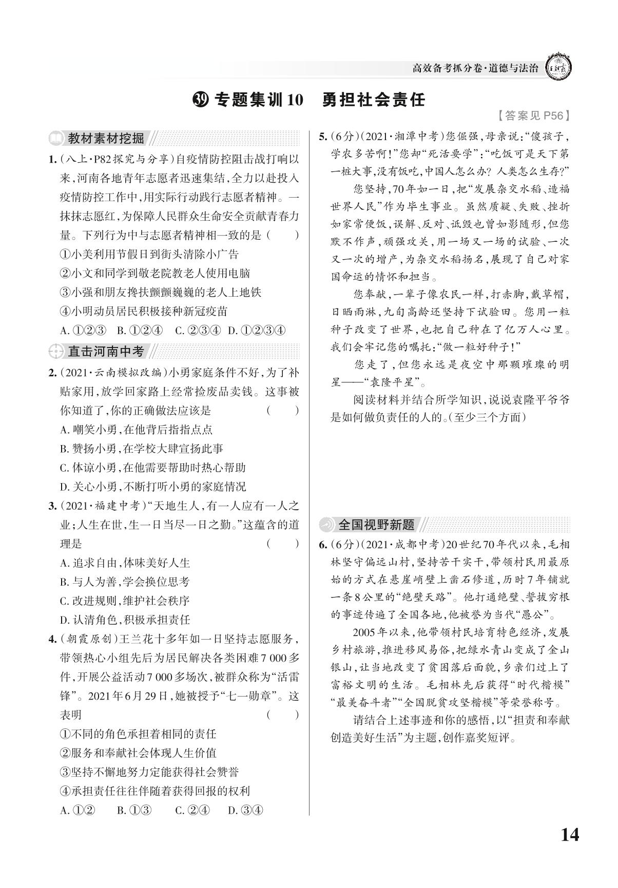 专题集训10 勇担社会责任·八年级上册道德与法治【39】