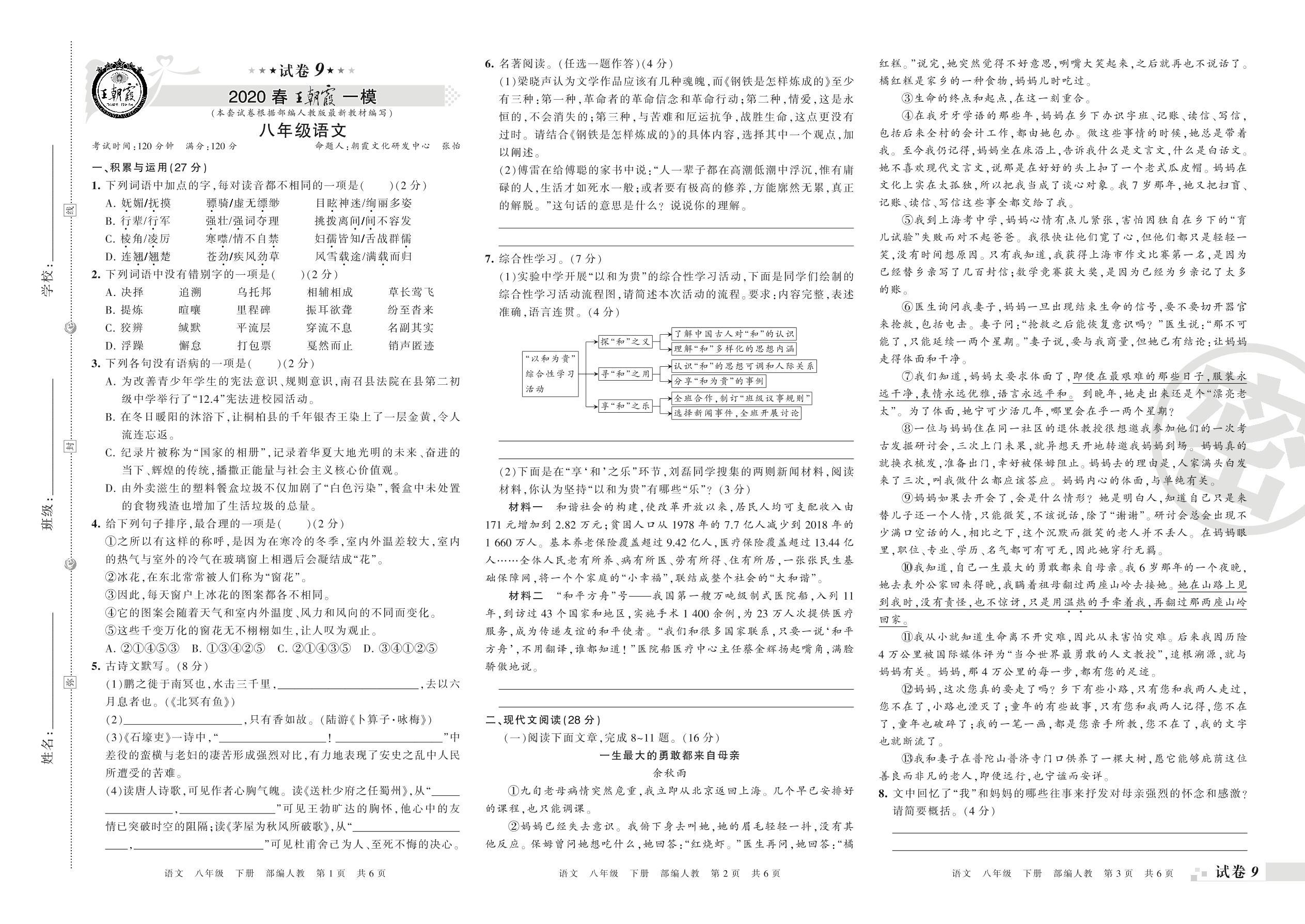 王朝霞期末模拟卷八年级下册语文(人教版)_R21080224016【9】