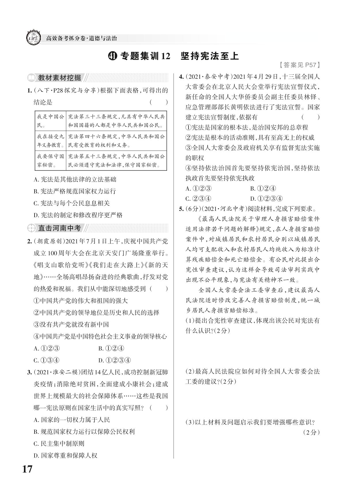 专题集训12 坚持宪法至上·八年级下册道德与法治【41】