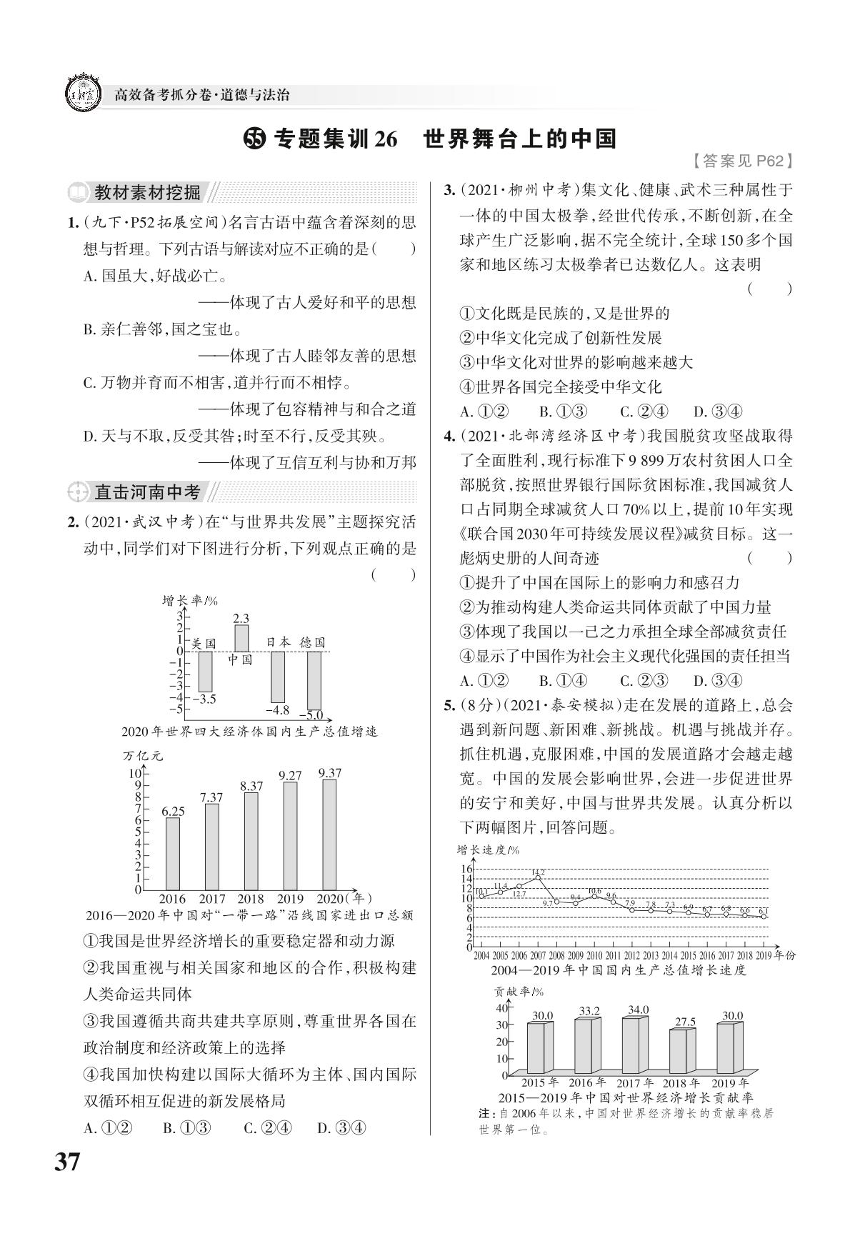 专题集训26 世界舞台上的中国·九年级下册道德与法治【55】