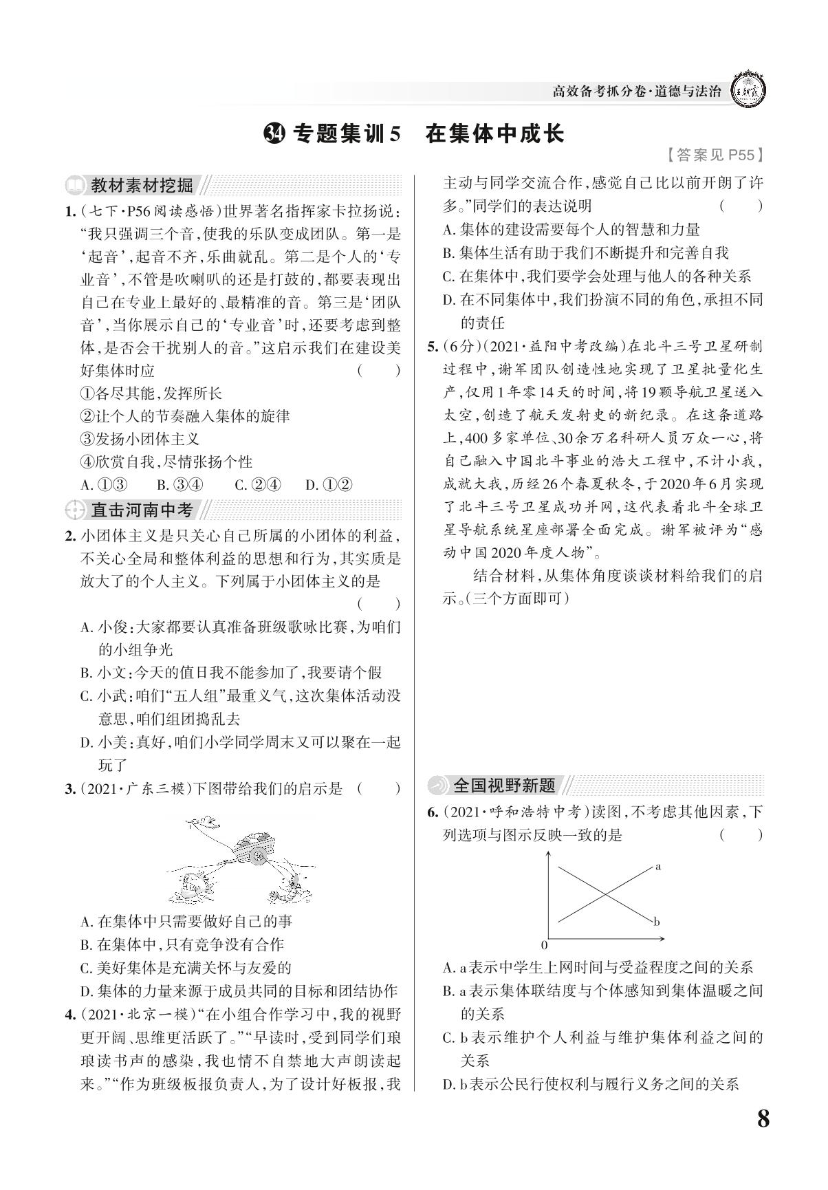 专题集训5 在集体中成长·七年级下册道德与法治【34】