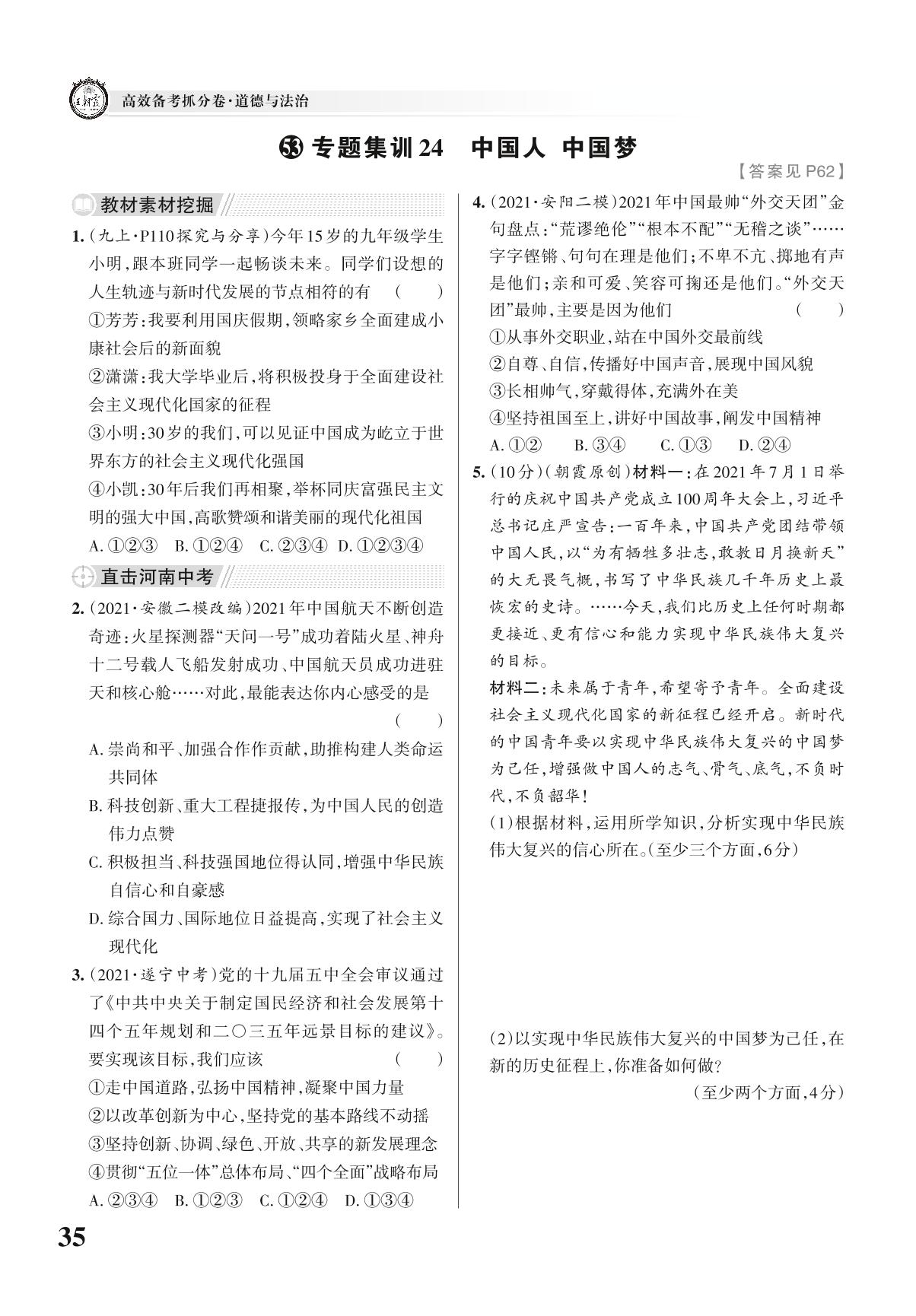 专题集训24 中国人 中国梦·九年级上册道德与法治【53】