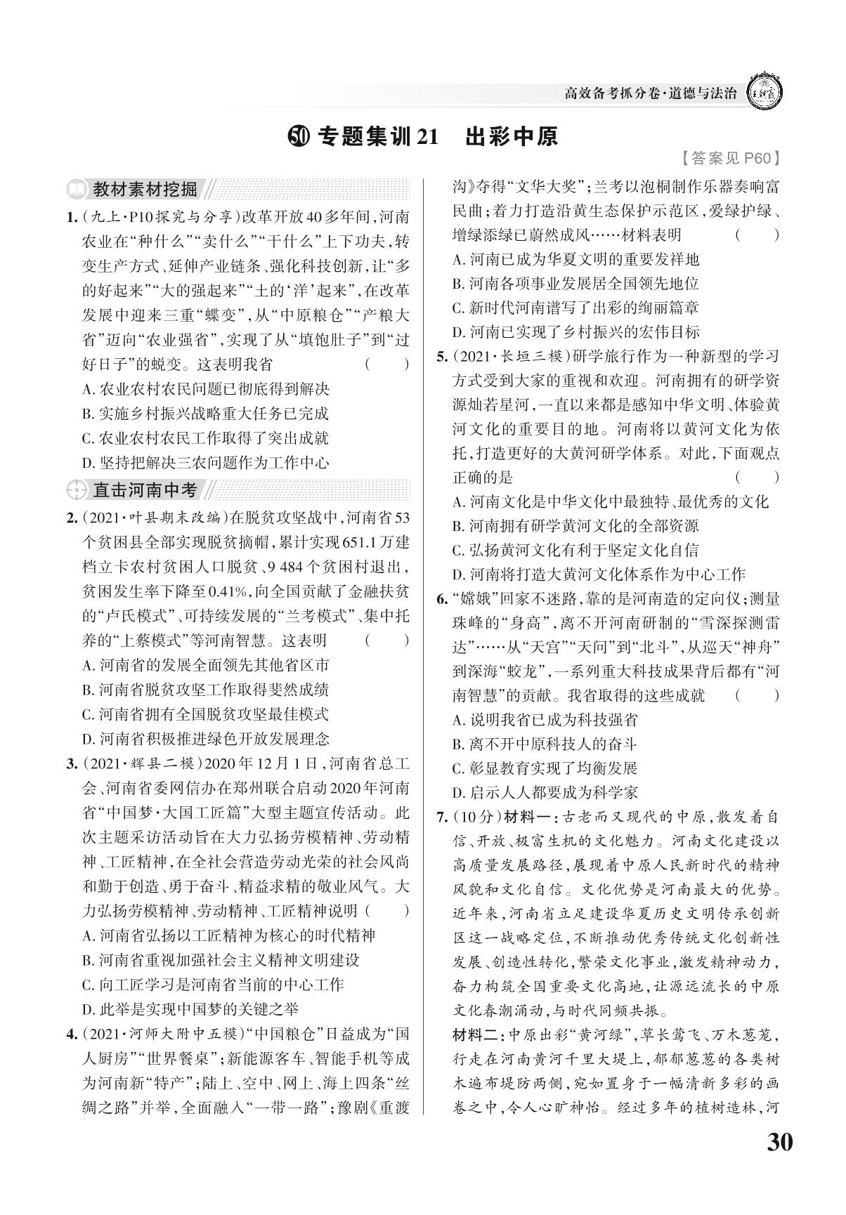 专题集训21 出彩中原·九年级上册道德与法治【50】
