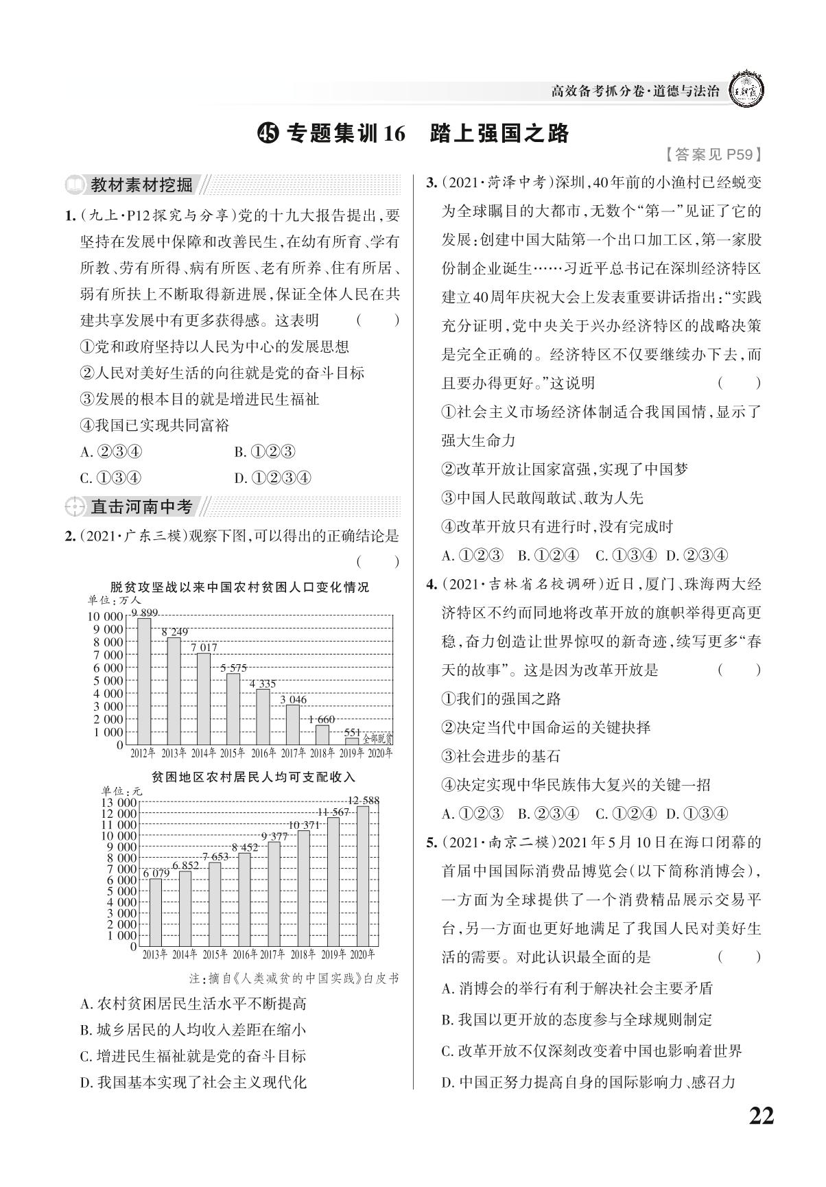专题集训16 踏上强国之路·九年级上册道德与法治【45】