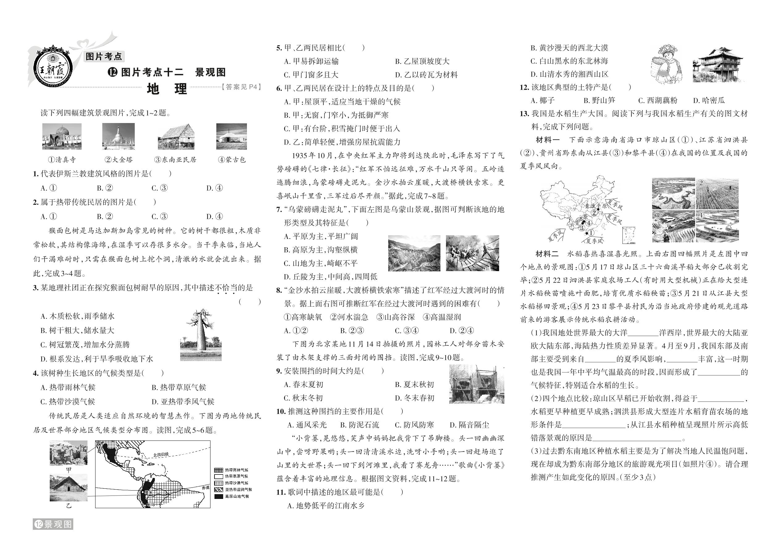 中考地理专项突破卷——图片考点十二 景观图【12】