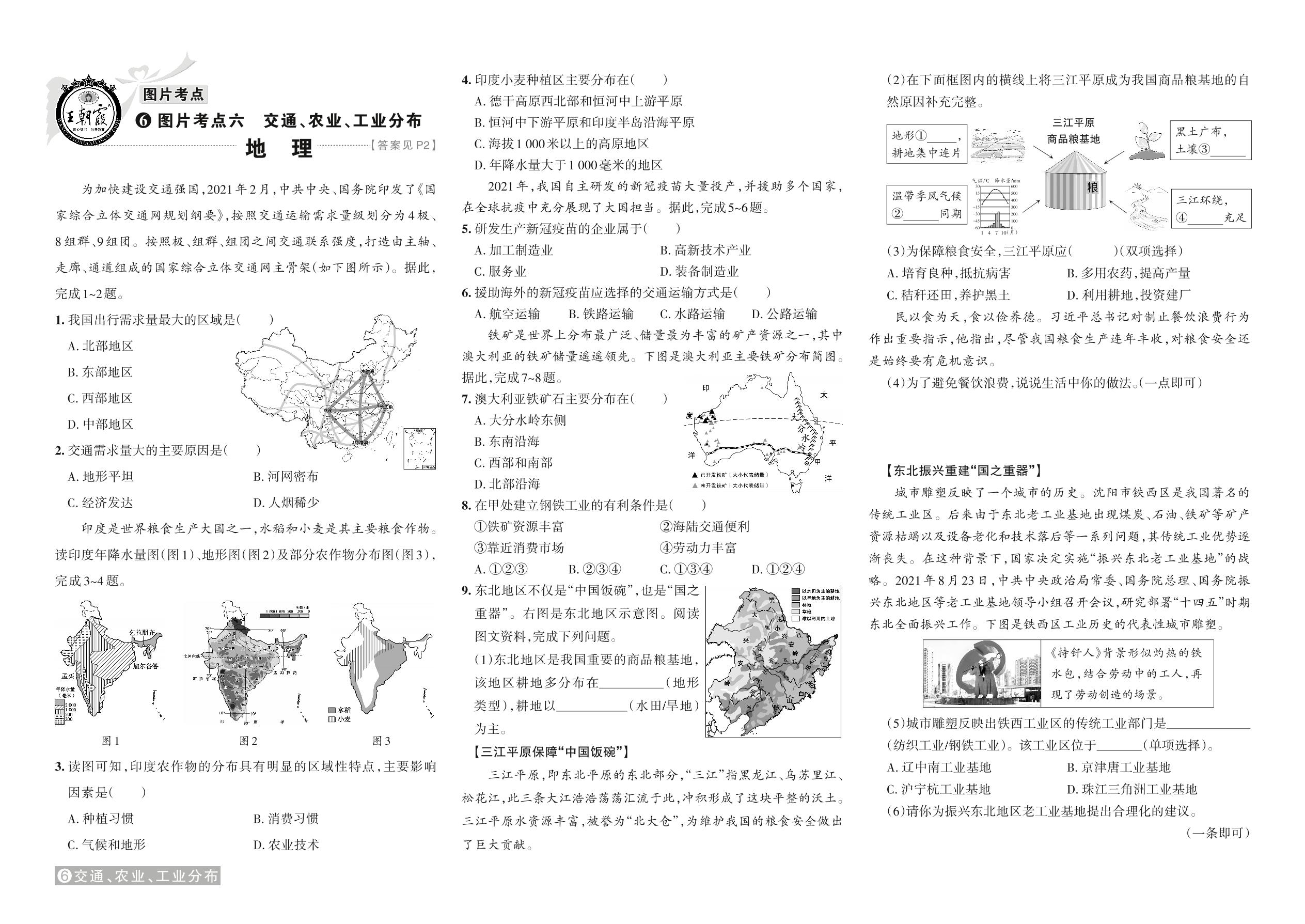 中考地理专项突破卷——图片考点六 交通、农业、工业分布【6】