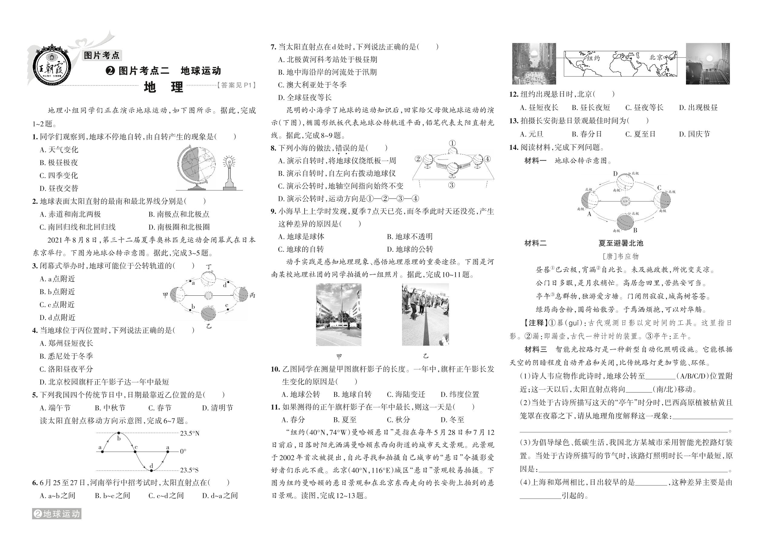 中考地理专项突破卷——图片考点二 地球运动【2】