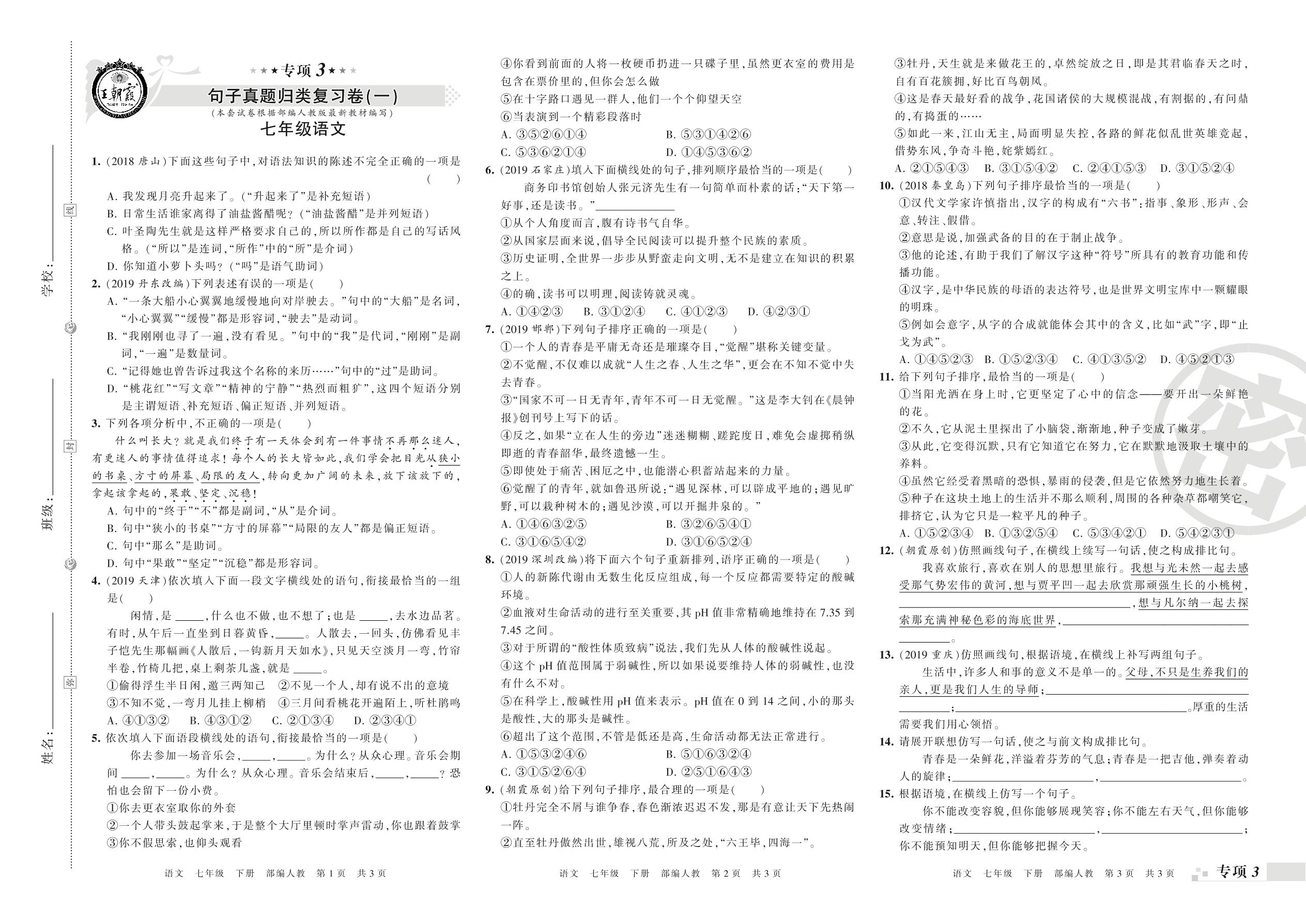 王朝霞期末专项卷——句子真题归类复习卷七年级下册语文(人教版)_R21080224058【0】