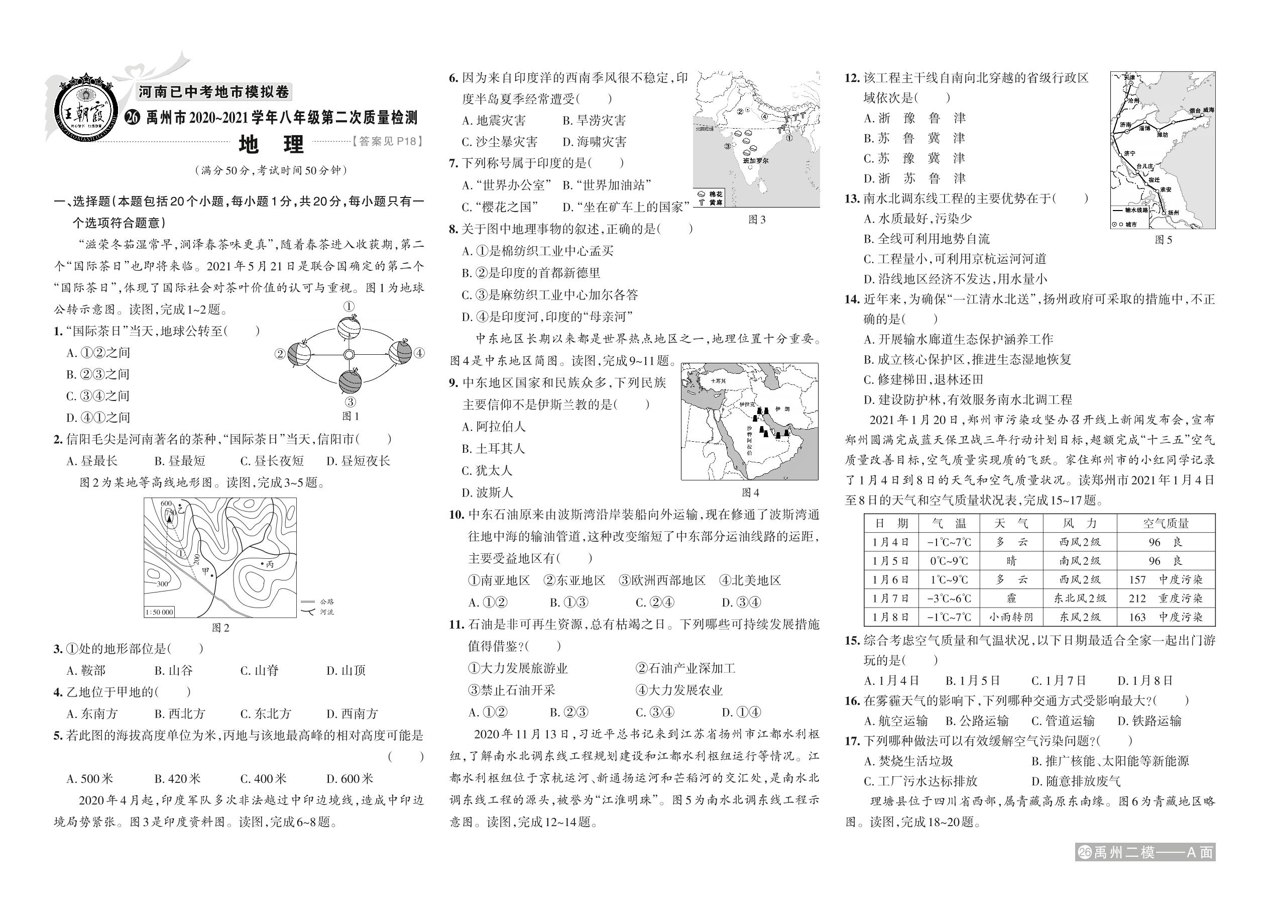 禹州市2020~2021学年八年级第二次质量检测·地理【26】