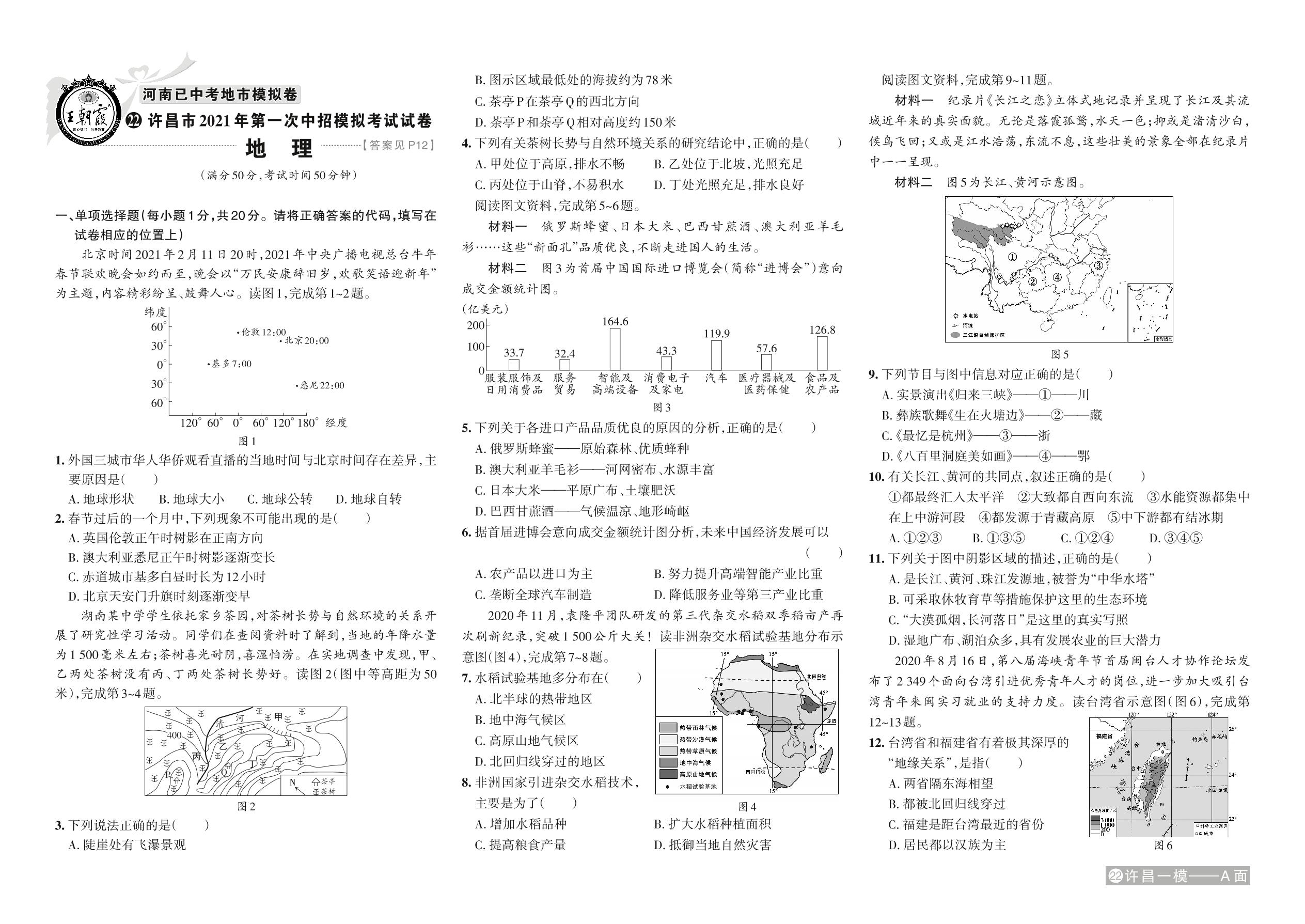 许昌市2021年第一次中招模拟考试试卷·地理【22】