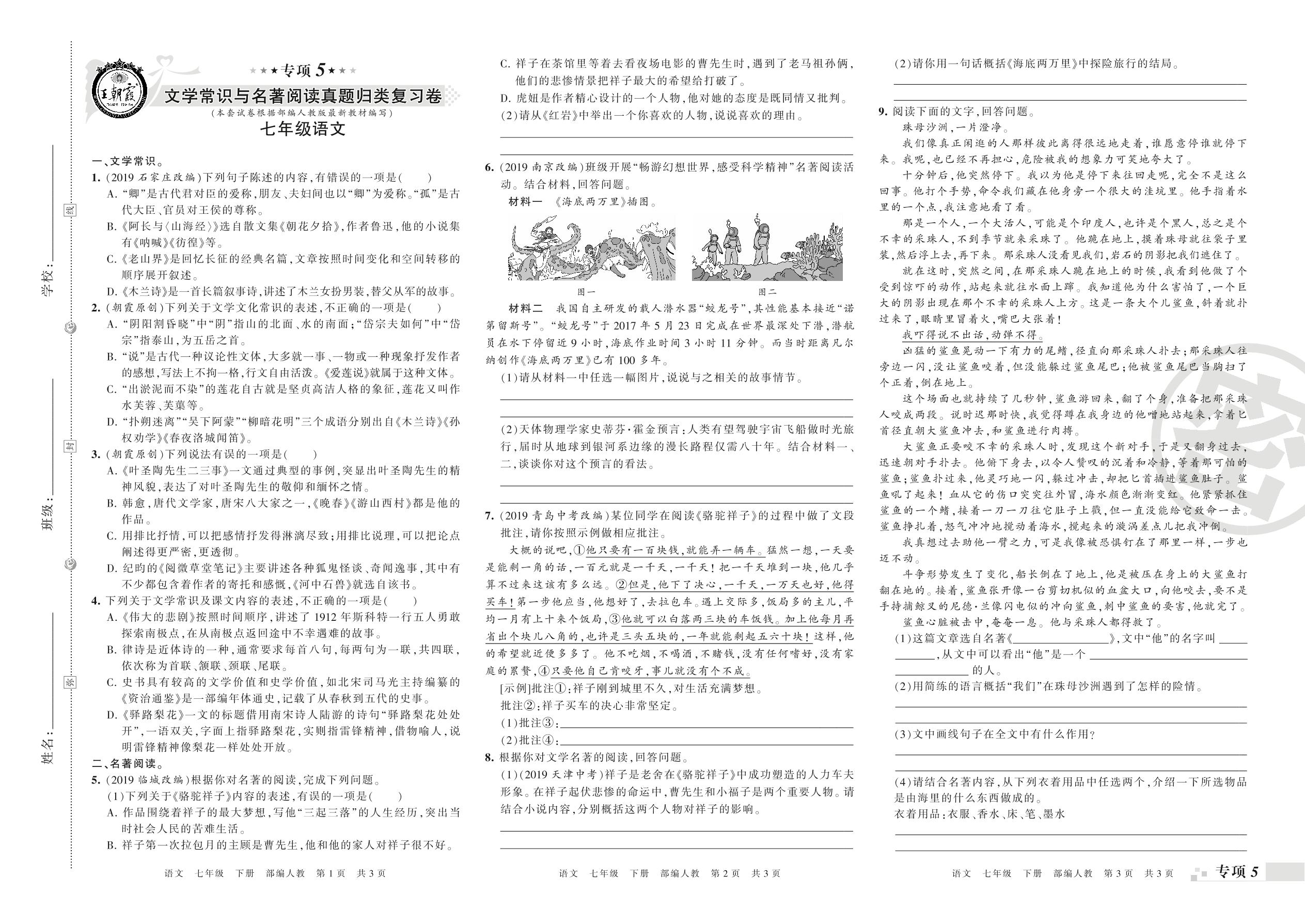 王朝霞期末专项卷——文学常识与名著阅读、口语交际与综合性学习真题归类复习卷七年级下册语文(人教版)_R21080224106【0】