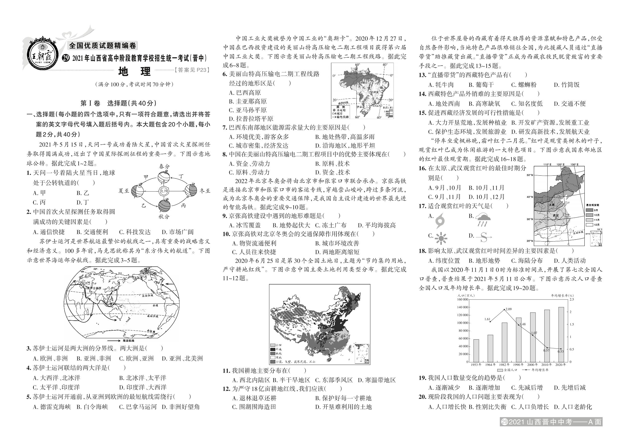 2021年山西省高中阶段教育学校招生统一考试(晋中)·地理【29】