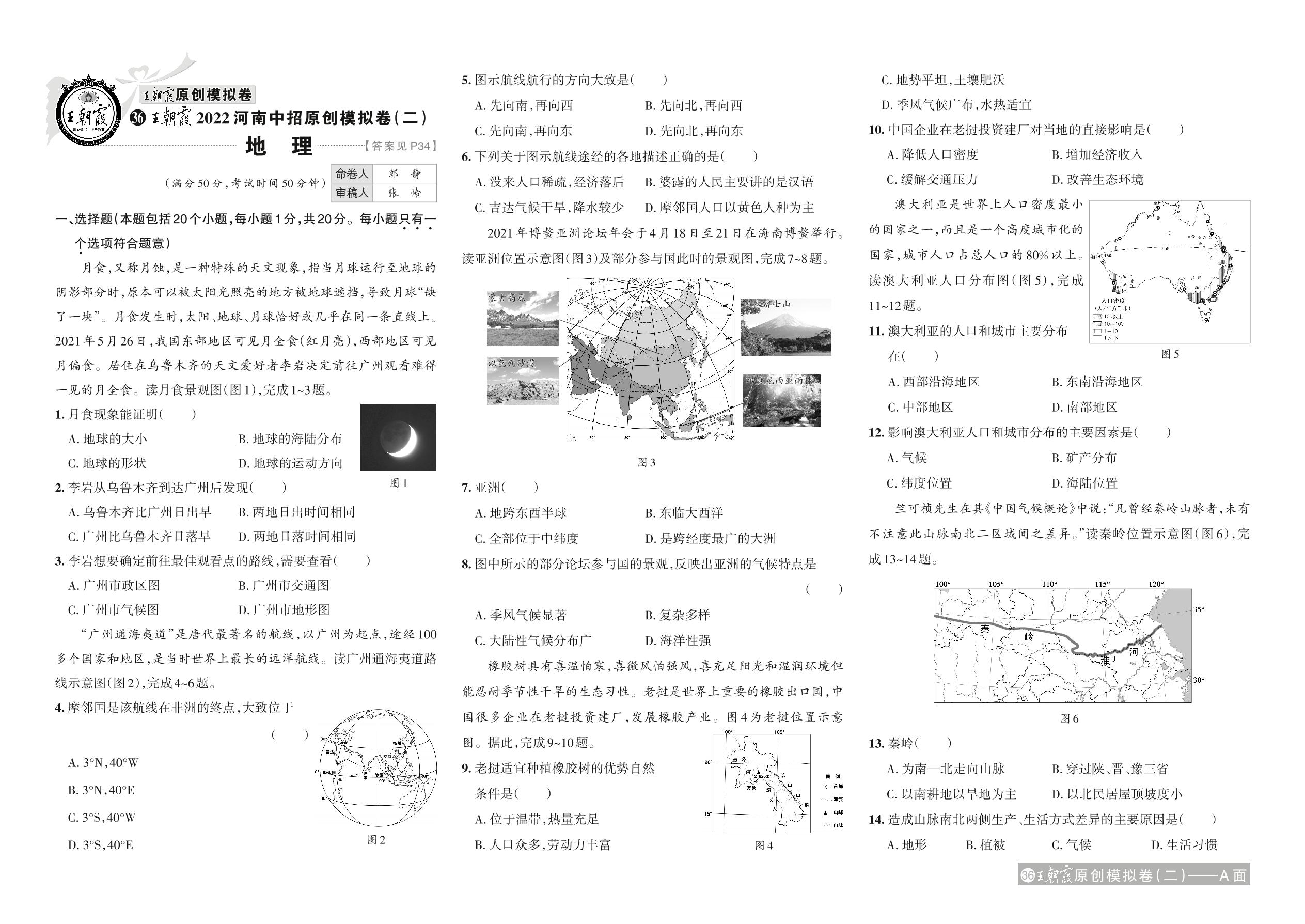 王朝霞2022河南中招原创模拟卷(二)·地理【36】