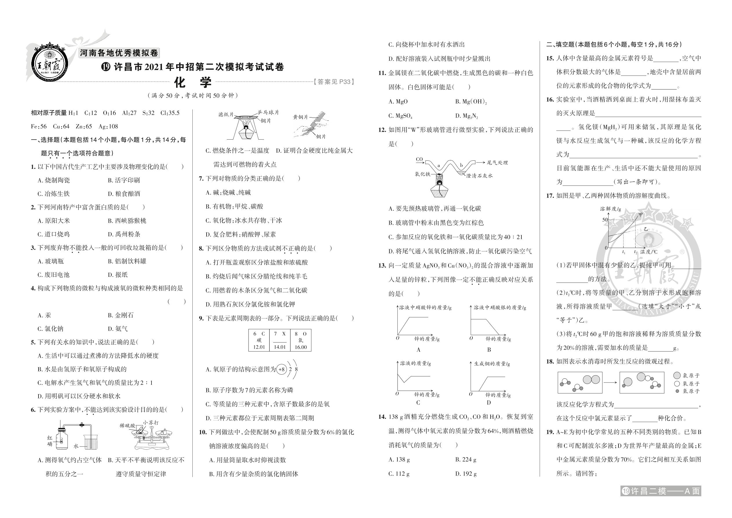 许昌市2021年中招第二次模拟考试试卷·化学【19】
