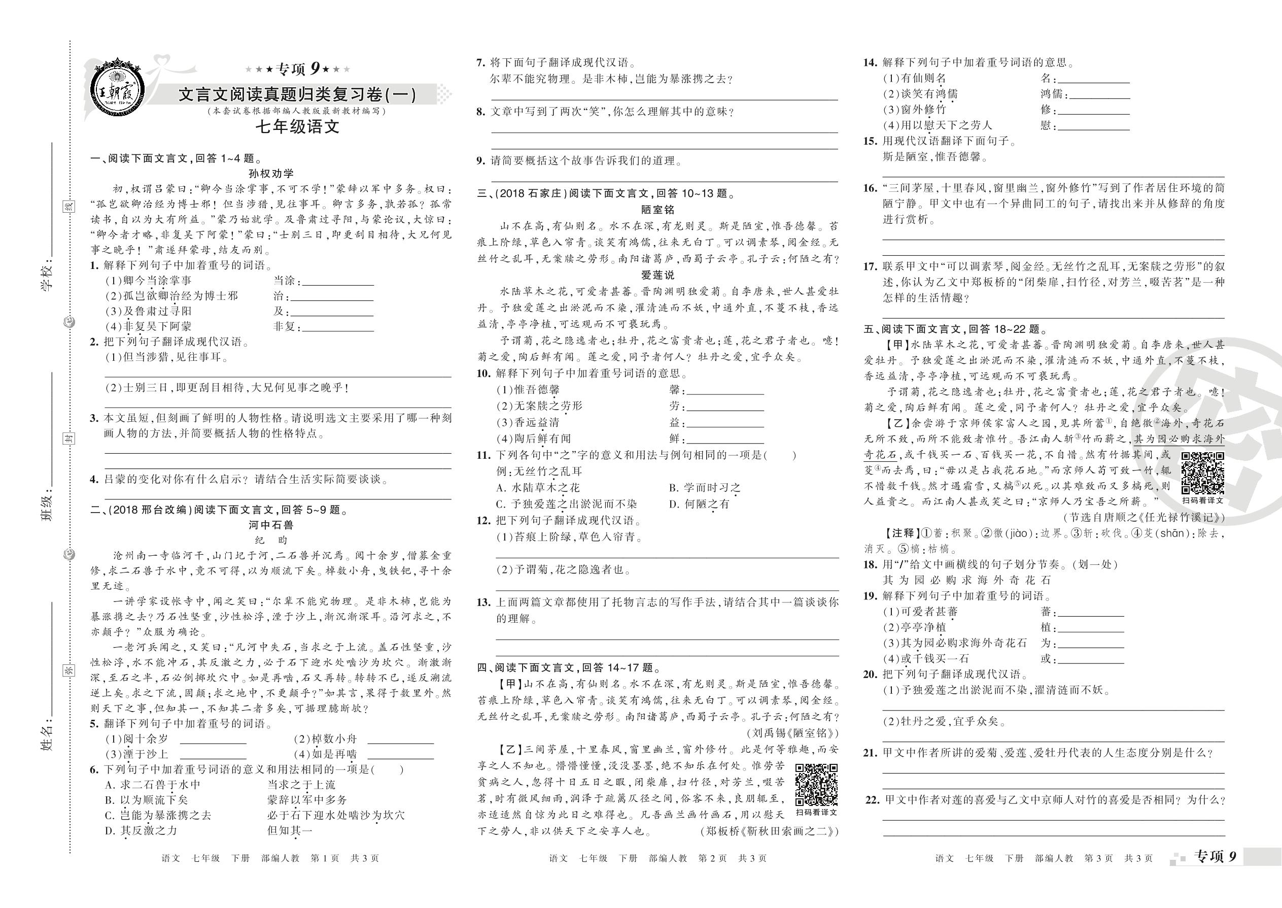 王朝霞期末专项卷——文言文阅读真题归类复习卷七年级下册语文(人教版)_R21080224123【0】
