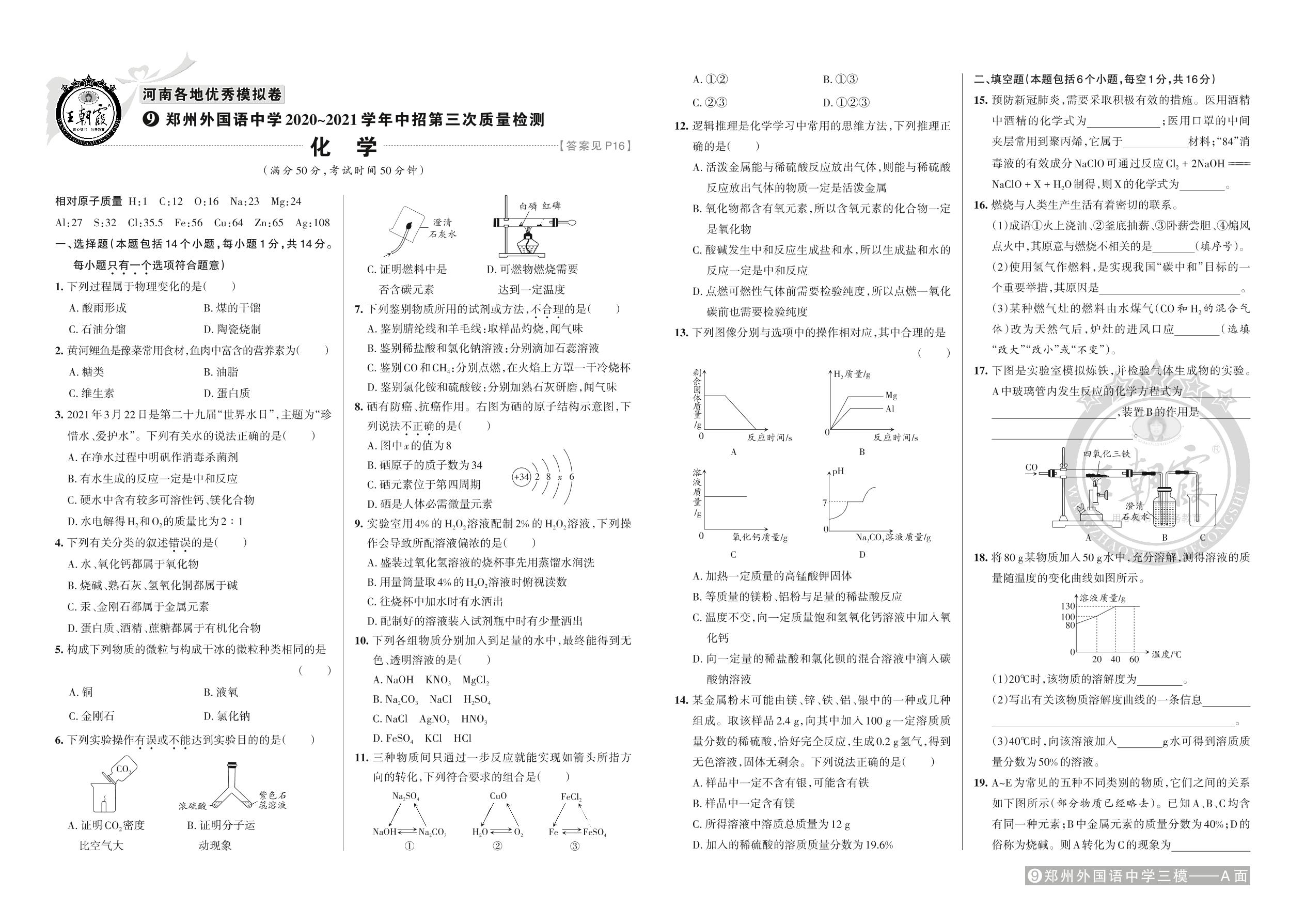 郑州外国语中学2020~2021学年中招第三次质量检测·化学【9】