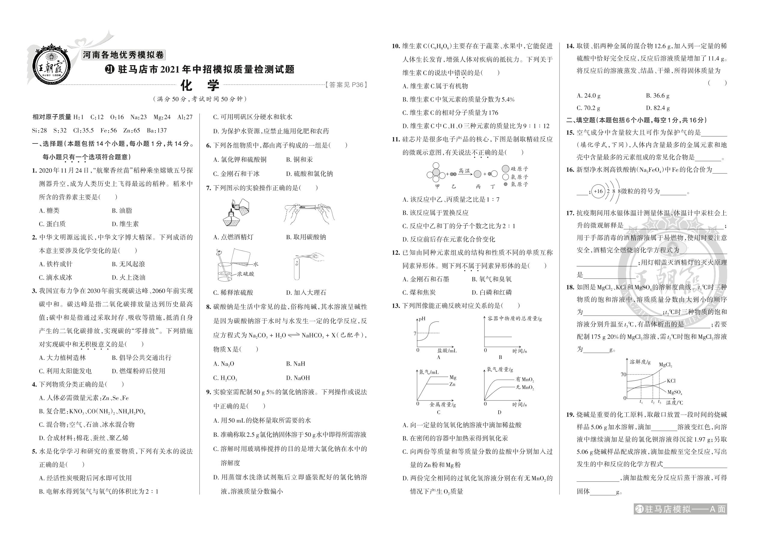 驻马店市2021年中招模拟质量检测试题·化学【21】