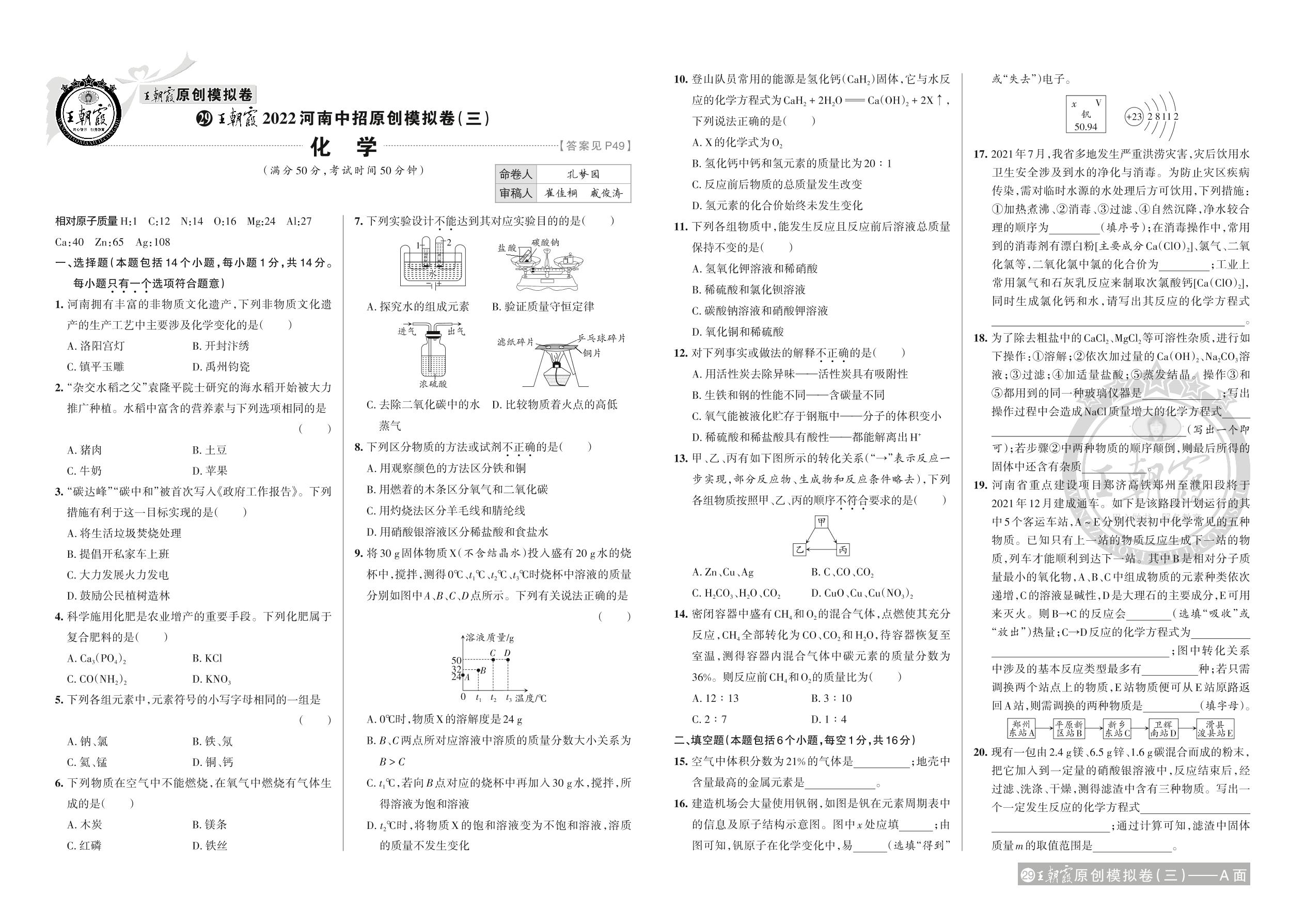 王朝霞2022河南中招原创模拟卷(三)·化学【29】