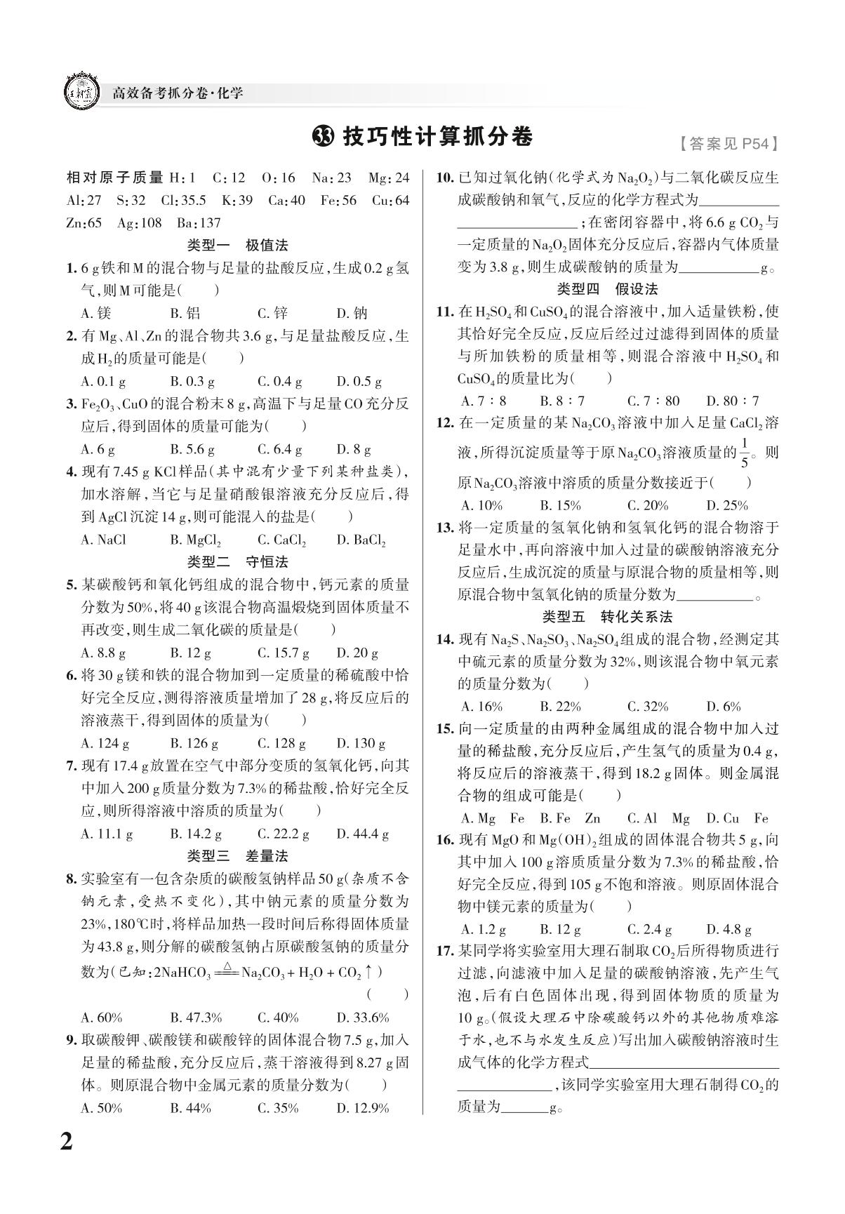 中考化学题型分类抓分卷——技巧性计算抓分卷【33】