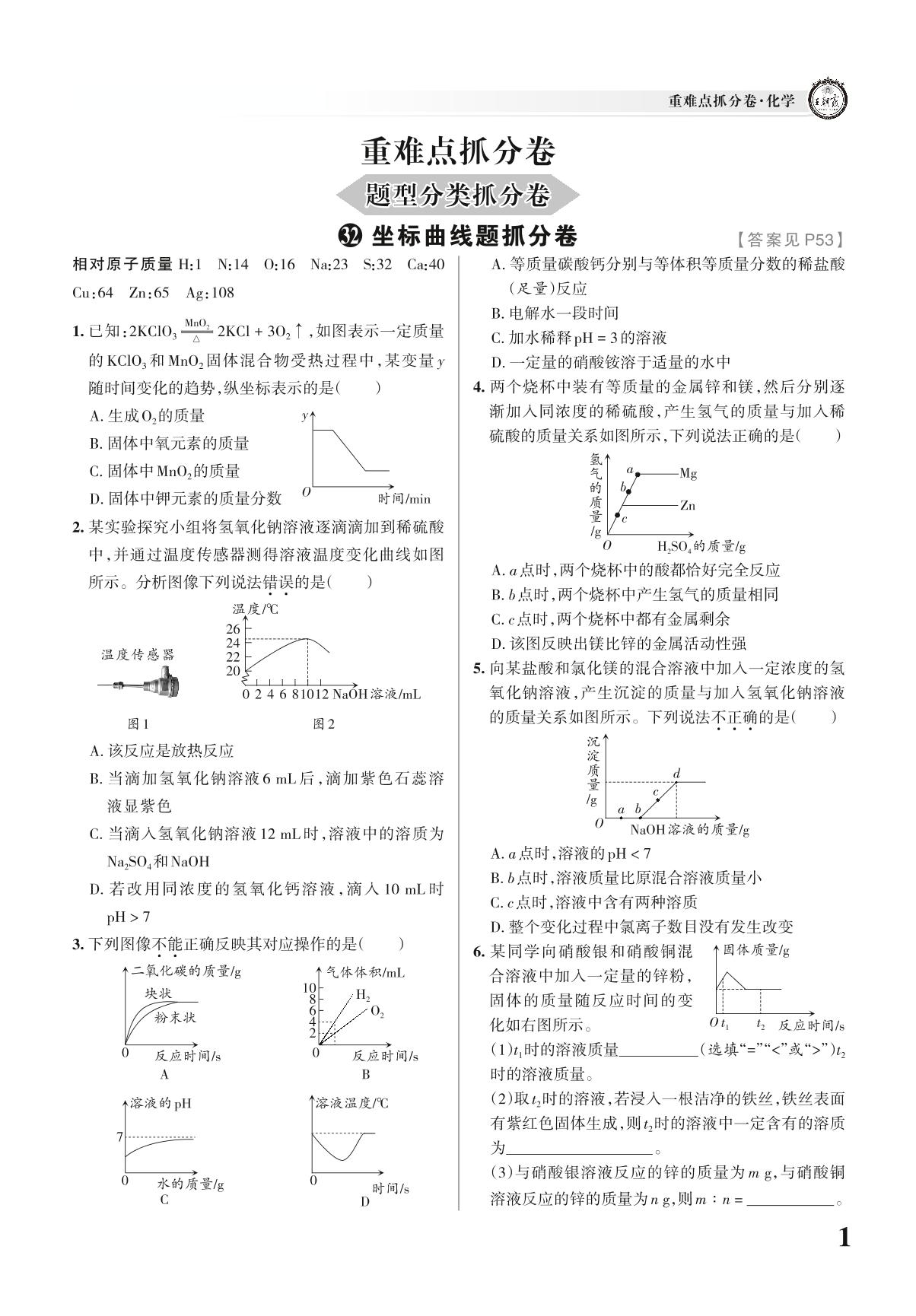 中考化学题型分类抓分卷——坐标曲线题抓分卷【32】
