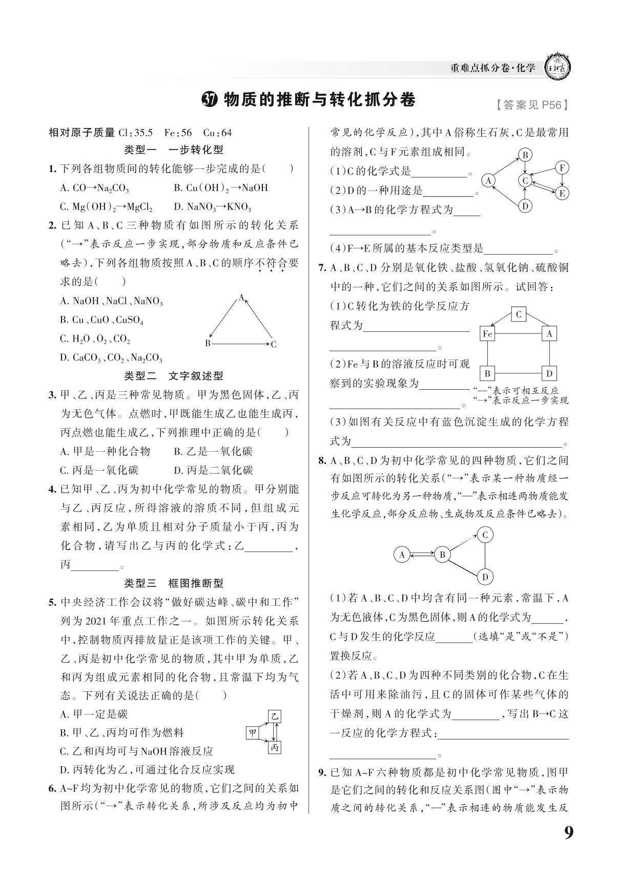 中考化学题型分类抓分卷——物质的推断与转化抓分卷【37】