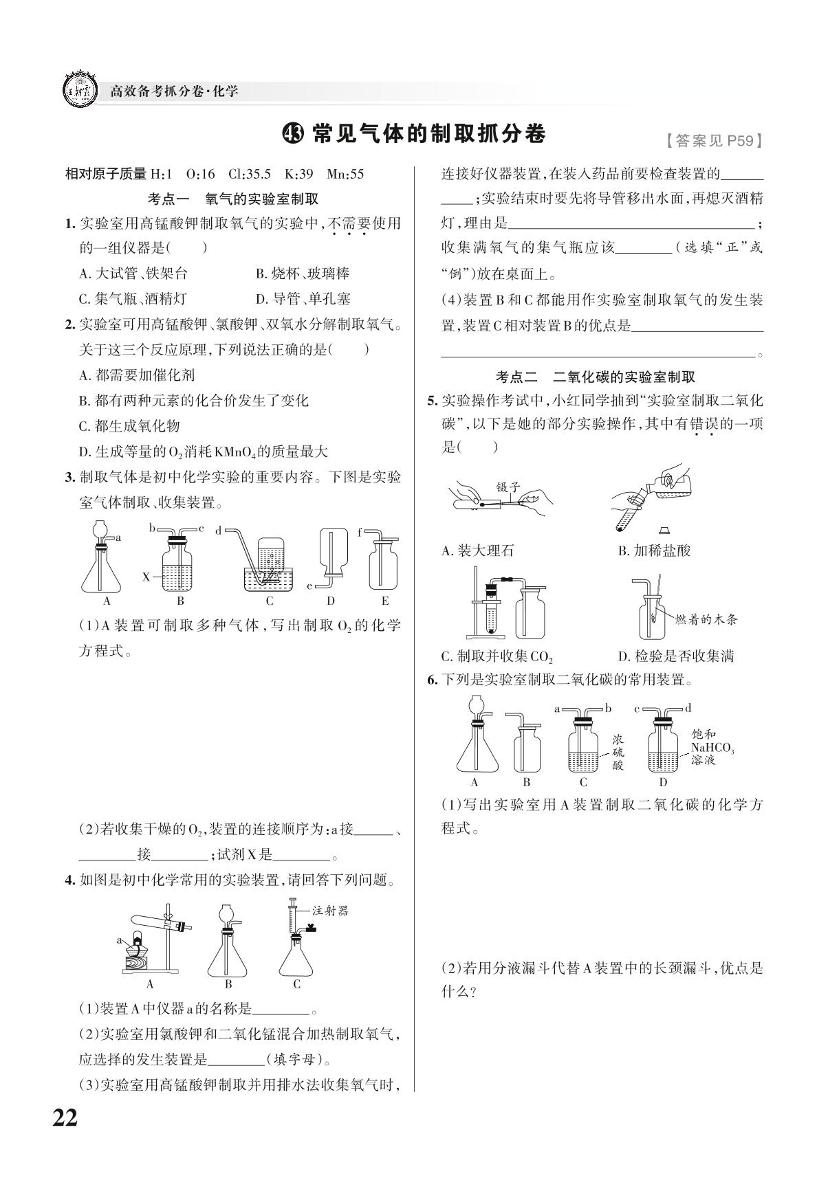 中考化学考点分类抓分卷——常见气体的制取抓分卷【43】