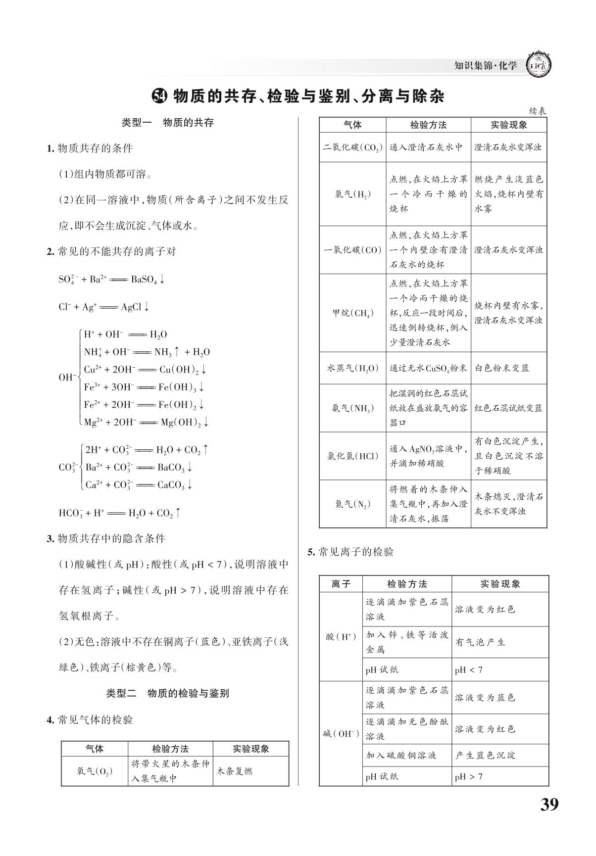 中考化学知识集锦——物质的共存、检验与鉴别、分离与除杂【54】