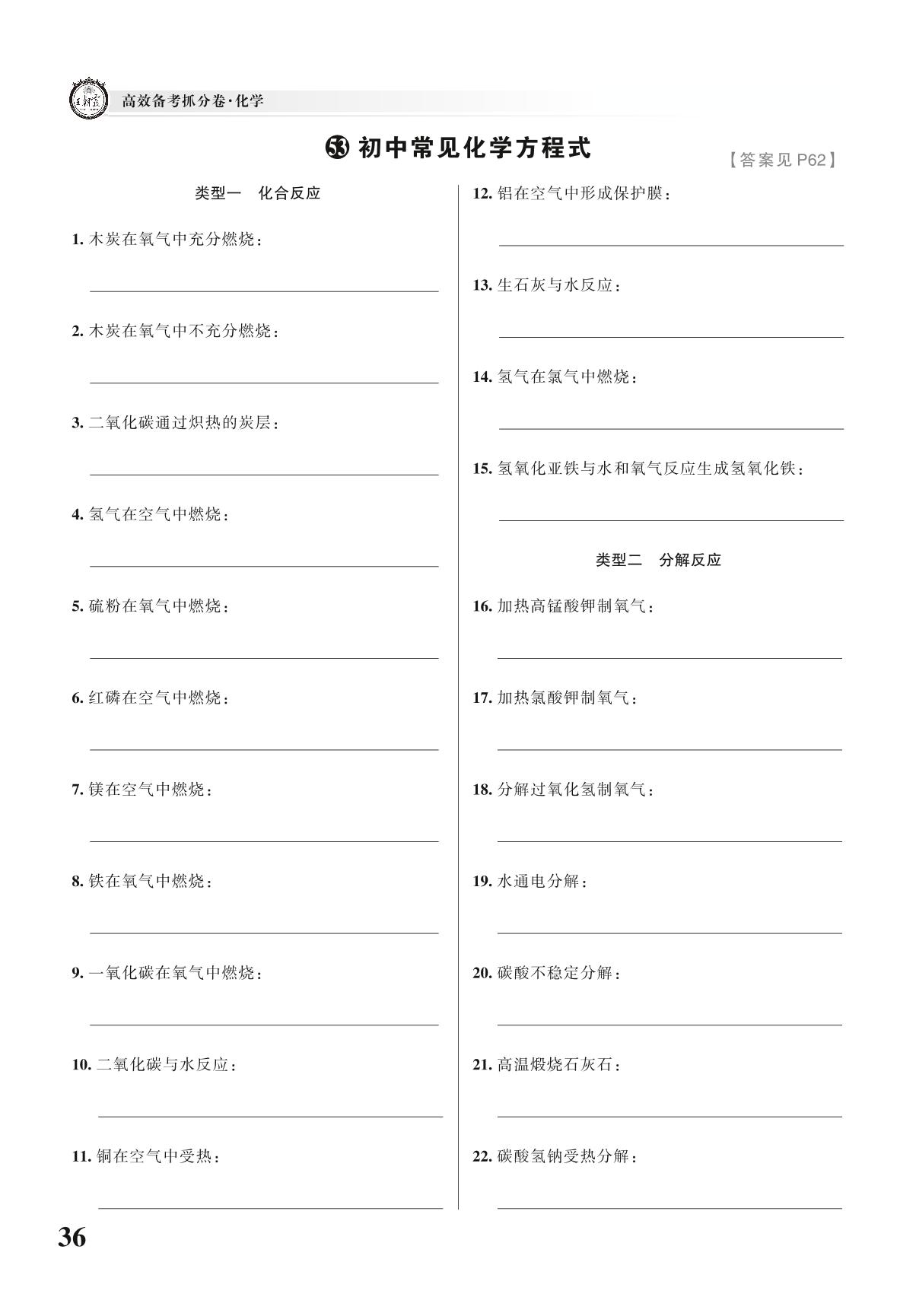 中考化学知识集锦——初中常见方程式【53】
