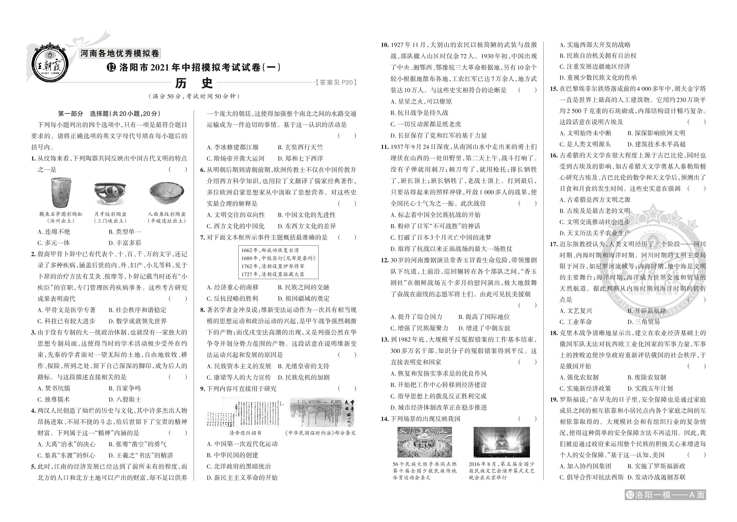 洛阳市2021年中招模拟考试试卷(一)·历史【12】